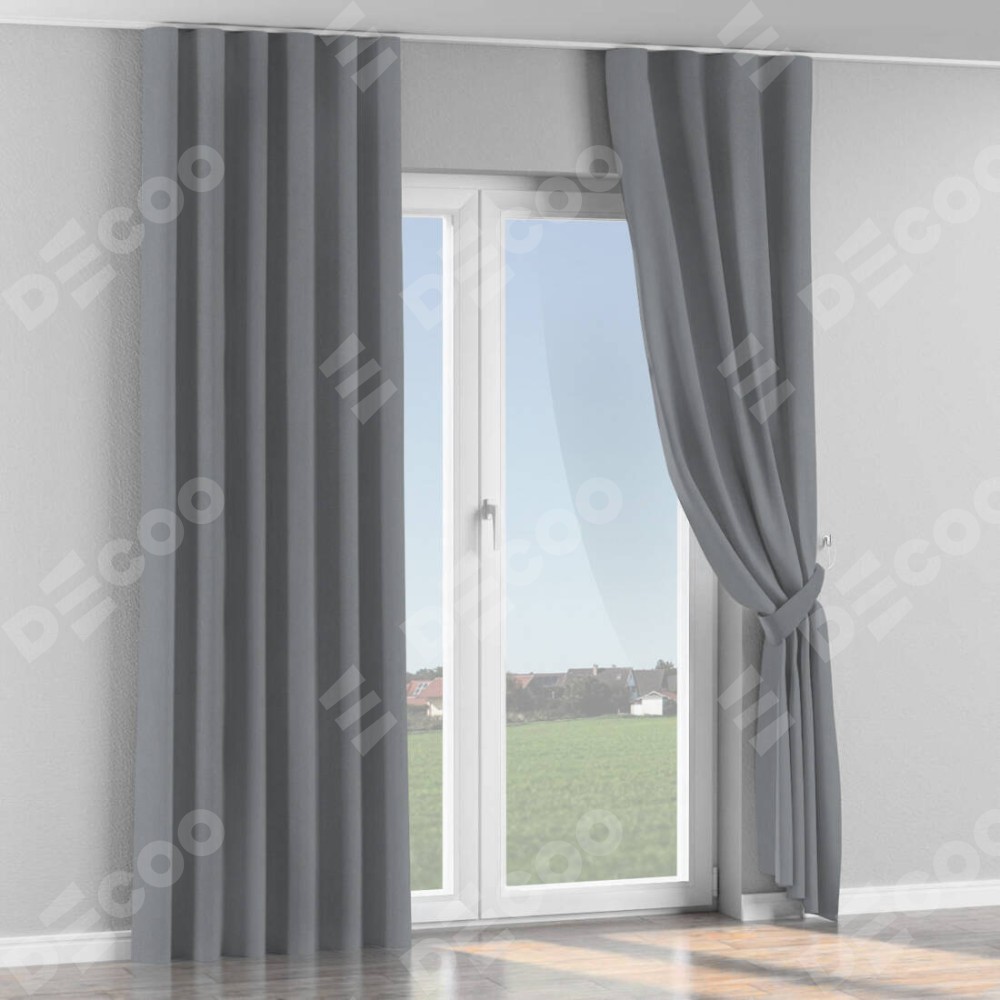 Комплект прямых штор, от производителя «Cortin», пошиты из ткани однотонный блэкаут серый, артикул ткани 146436. С изнаночной стороны в верхней части штор пристрачивается шторная лента с декоративными складками «Волна». Для создания элегантных складок рекомендуемый коэффициент 1:2 (на 100 см. ширины проёма 200 см. ширины ткани). Важно! Ширина штор указана без учёта коэффициента сборки!