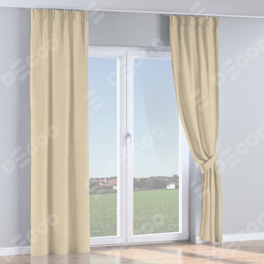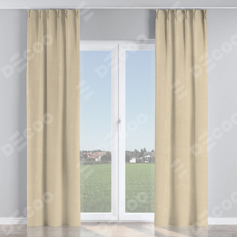Комплект прямых штор, от производителя «Cortin», пошиты из ткани однотонный блэкаут кофейно-бежевый, артикул ткани 91566−1. С изнаночной стороны в верхней части штор пристрачивается шторная лента с декоративными складками «Кустик». Для создания элегантных складок рекомендуемый коэффициент 1:2 (на 100 см. ширины проёма 200 см. ширины ткани). Важно! Ширина штор указана без учёта коэффициента сборки!
