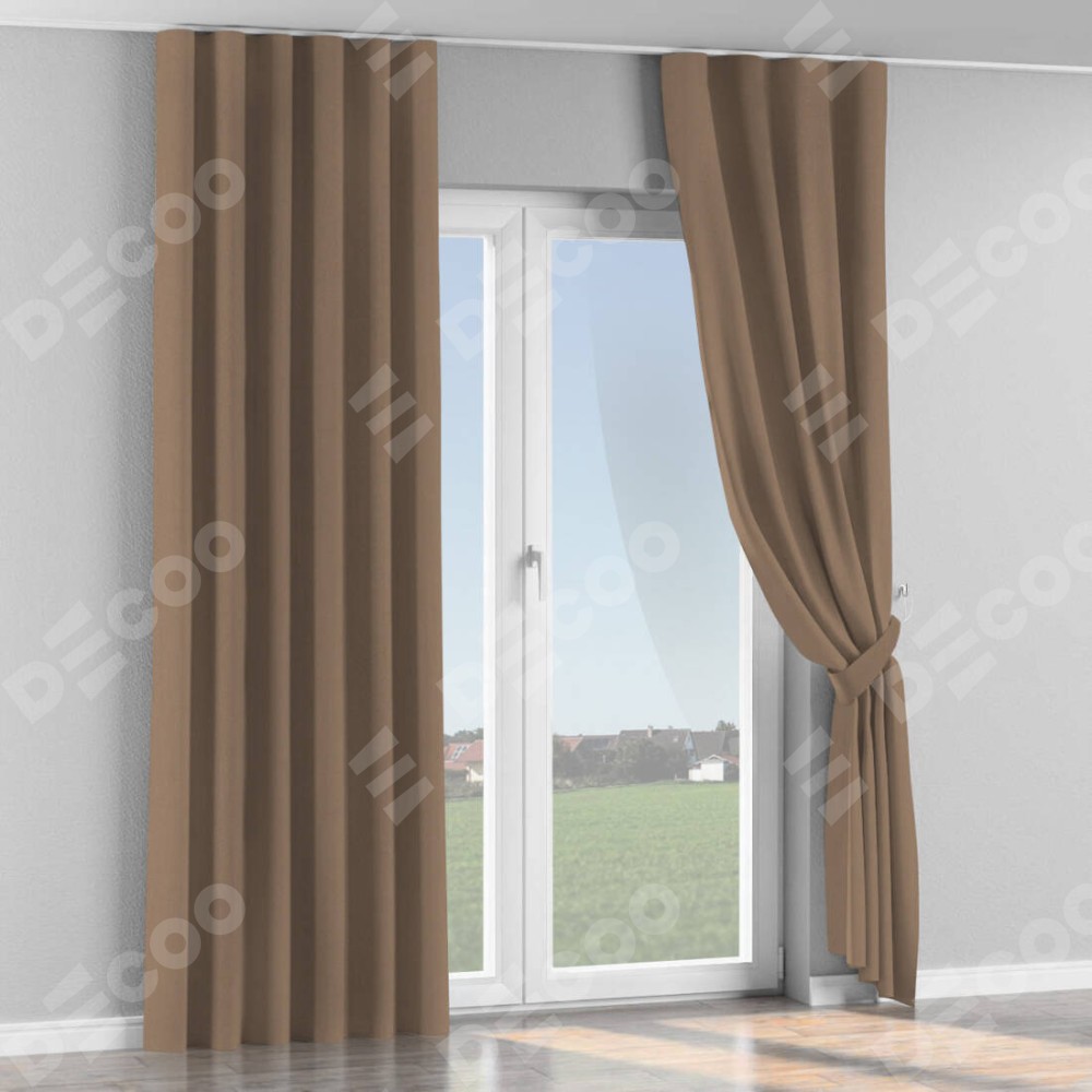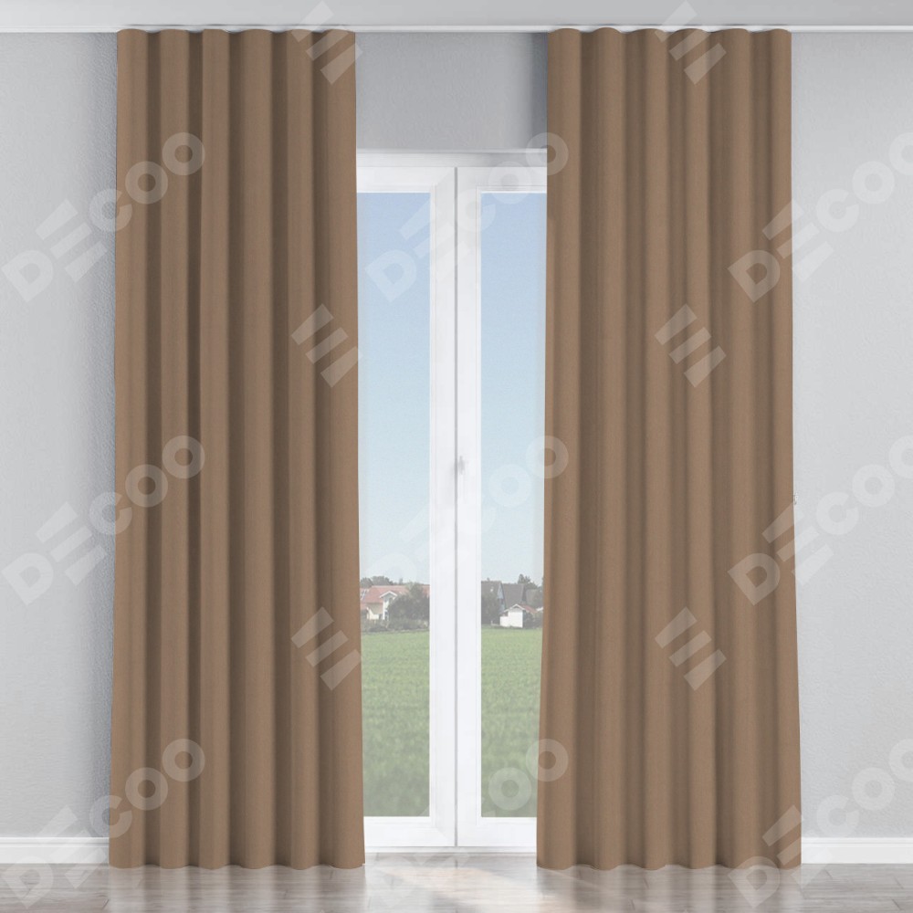 Комплект прямых штор, от производителя «Cortin», пошиты из ткани однотонный блэкаут кофейно-бежевый, артикул ткани 91566−2. С изнаночной стороны в верхней части штор пристрачивается шторная лента с декоративными складками «Волна». Для создания элегантных складок рекомендуемый коэффициент 1:2 (на 100 см. ширины проёма 200 см. ширины ткани). Важно! Ширина штор указана без учёта коэффициента сборки!