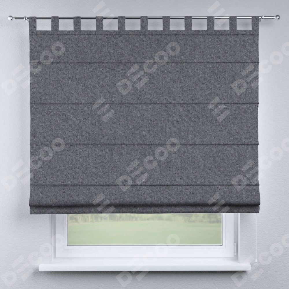 Римская штора на петлях «Кортин», ткань лён блэкаут, тёмно-серый