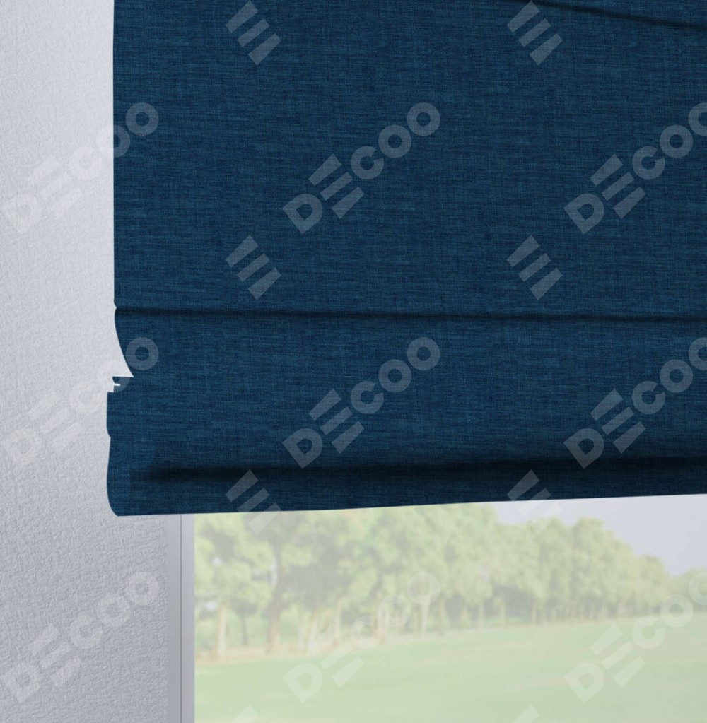 Римская штора производителя «Cortin», используется для проёма, пошита из ткани лён синий, артикул ткани 104496. Данная модель пошита на петлях, комплектуется на выбор круглым карнизом и подходит для монтажа на стену. Римская штора на петлях имеет простую систему регулировки высоты, отличительным преимуществом данной модели является простой способ монтажа. Достаточно повесить ее на трубу и штора готова!