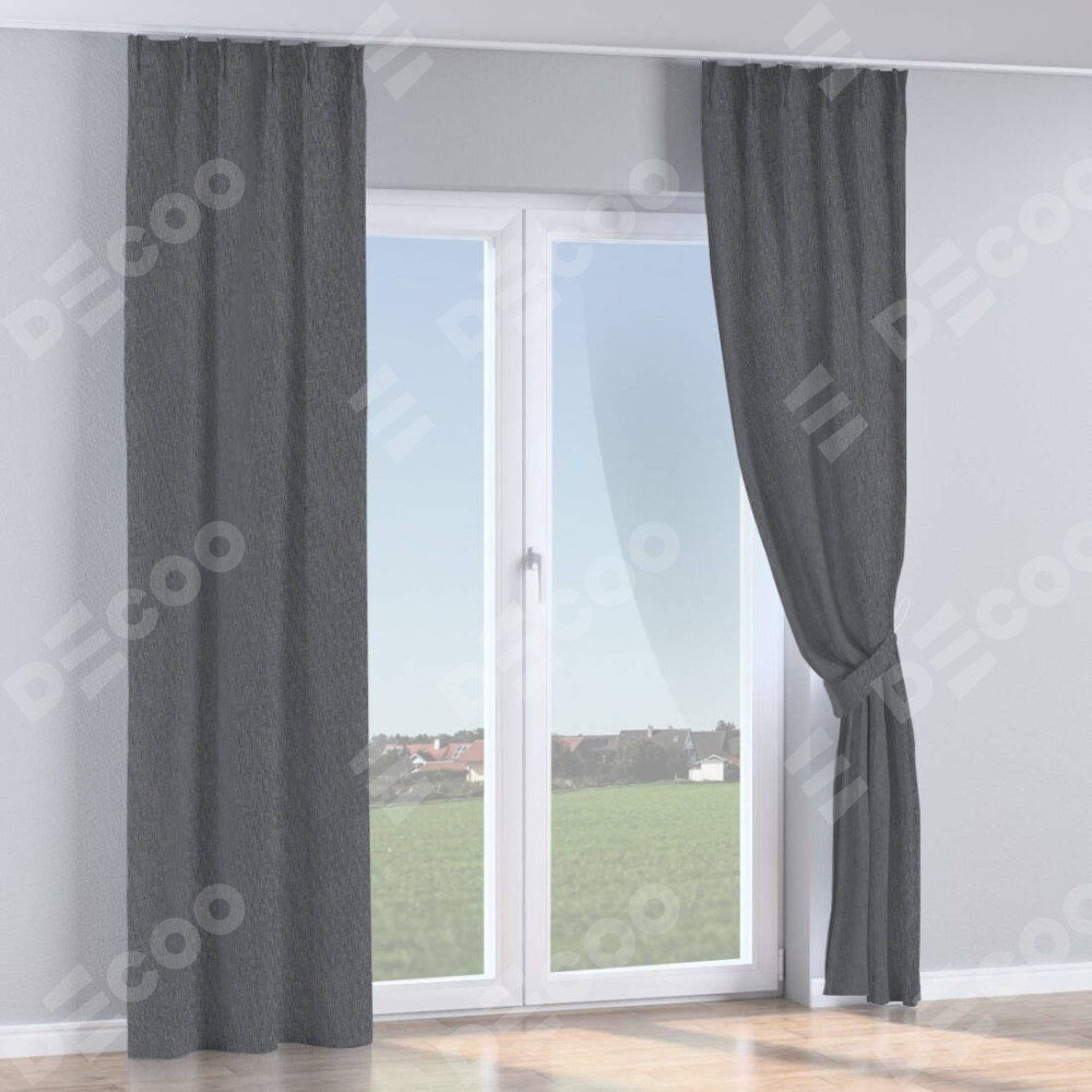 Комплект прямых штор, от производителя «Cortin», пошиты из ткани лён димаут графит, артикул ткани 140644. С изнаночной стороны в верхней части штор пристрачивается шторная лента с декоративными складками «Кустик». Для создания элегантных складок рекомендуемый коэффициент 1:2 (на 100 см. ширины проёма 200 см. ширины ткани). Важно! Ширина штор указана без учёта коэффициента сборки!