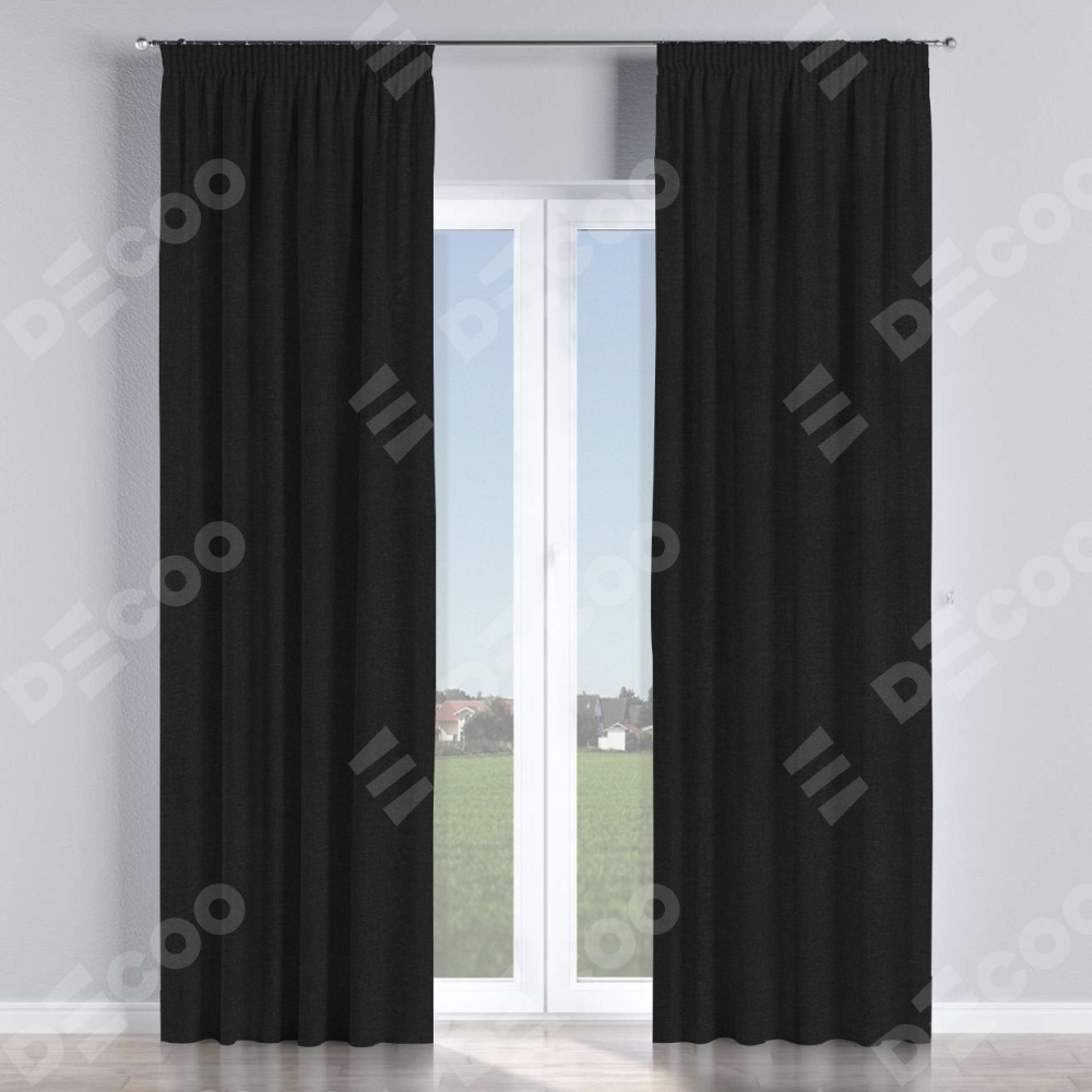 Комплект штор лён черный, на тесьме «Карандаш»