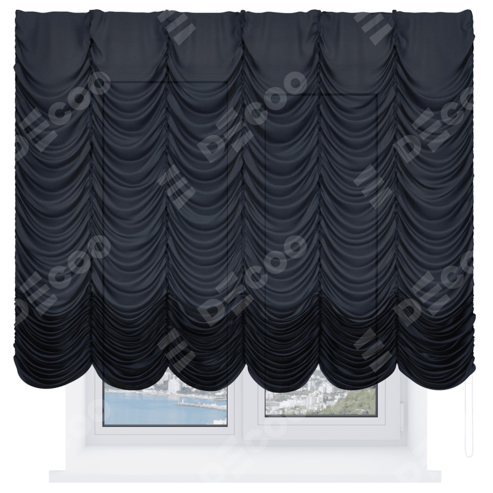 Французская штора производителя «Cortin», используется для проёма, пошита из ткани лён черный, артикул ткани 140815. Имеет универсальный механизм и подходит для монтажа: на потолок и на стену.