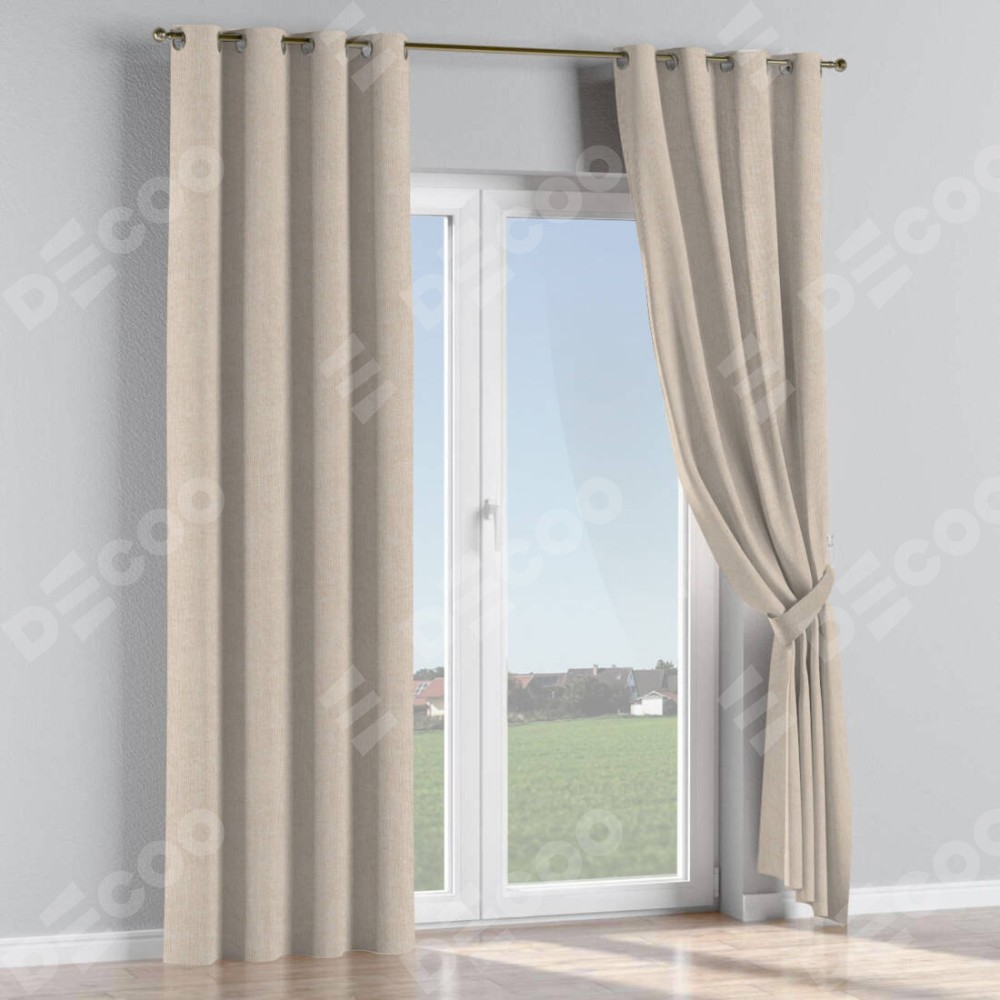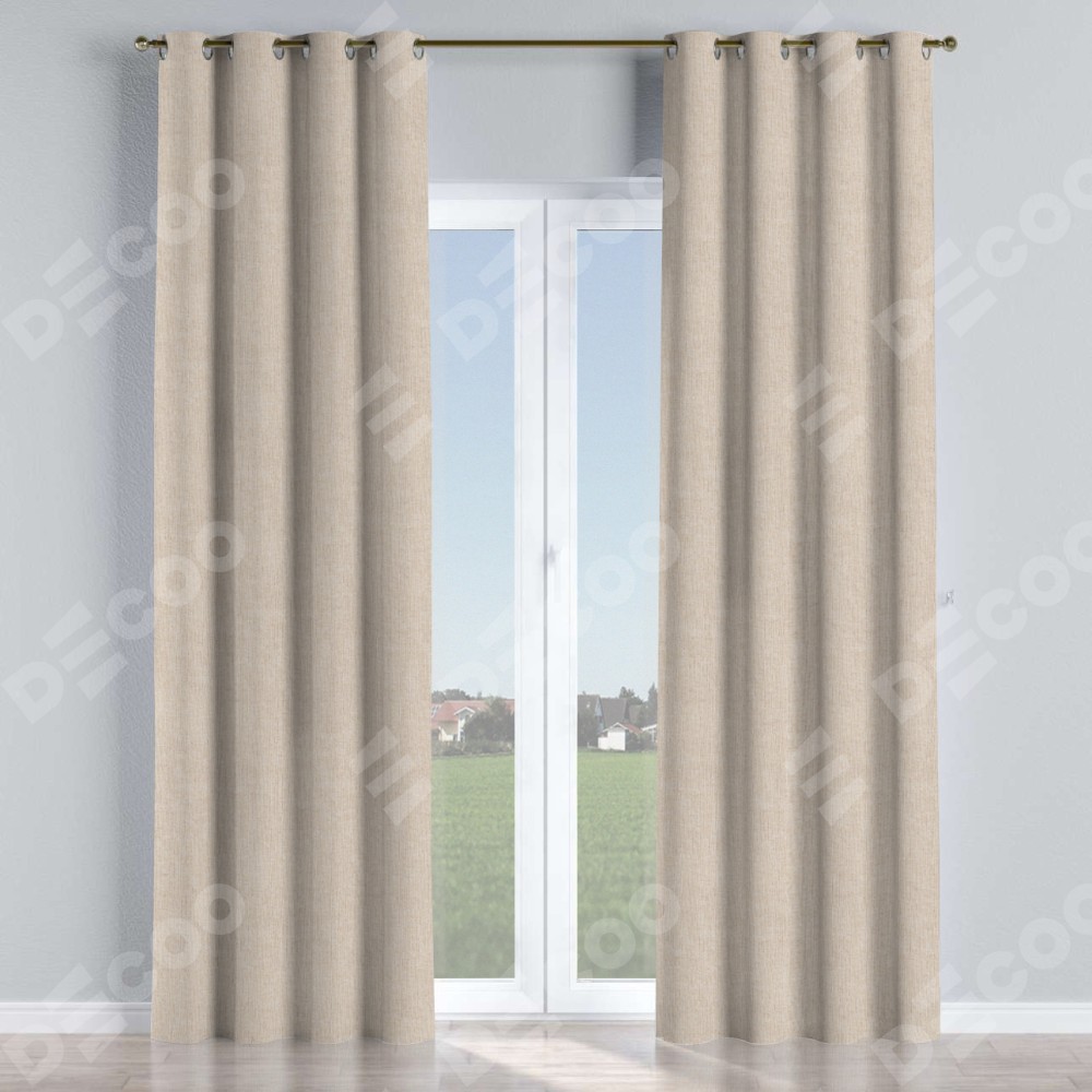 Комплект прямых штор, от производителя «Cortin», пошиты из ткани лён кашемир натуральный беж. Данная модель пошита на люверсах, комплектуется на выбор круглым карнизом и подходит для монтажа на стену или потолок. Для создания элегантных складок рекомендуемый коэффициент 1:2 (на 100 см. ширины проёма 200 см. ширины ткани). Важно! Ширина штор указана без учёта коэффициента сборки!