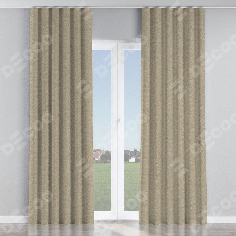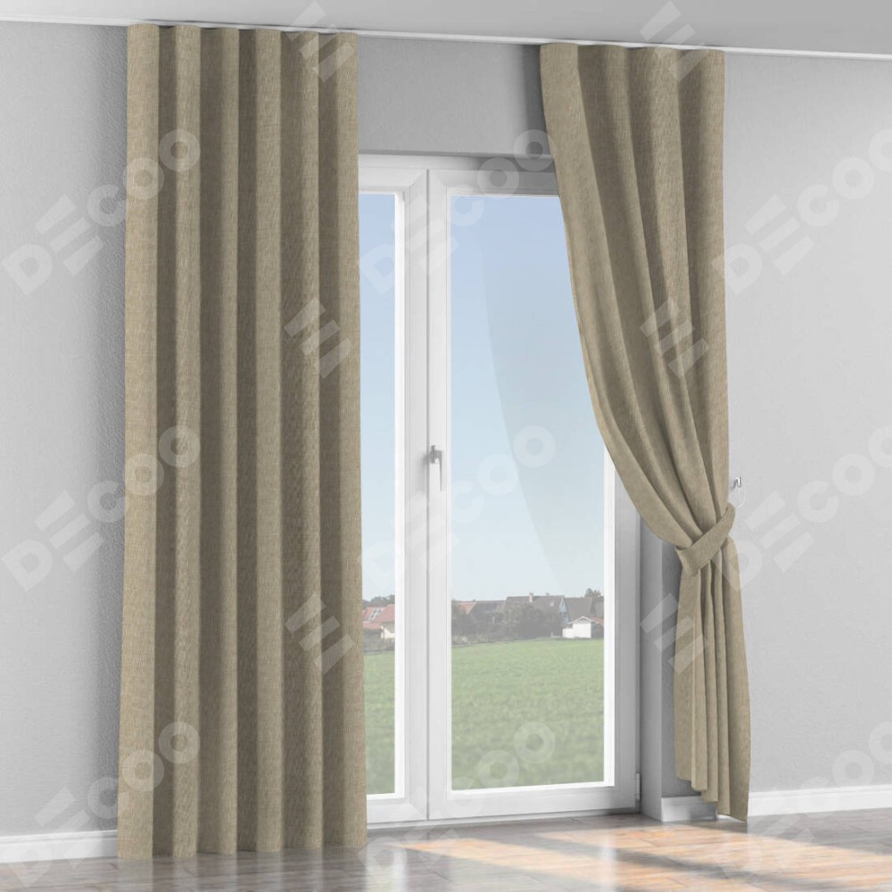 Комплект прямых штор, от производителя «Cortin», пошиты из ткани лён бежевый, артикул ткани 143839. С изнаночной стороны в верхней части штор пристрачивается шторная лента с декоративными складками «Волна». Для создания элегантных складок рекомендуемый коэффициент 1:2 (на 100 см. ширины проёма 200 см. ширины ткани). Важно! Ширина штор указана без учёта коэффициента сборки!