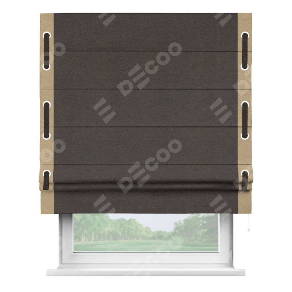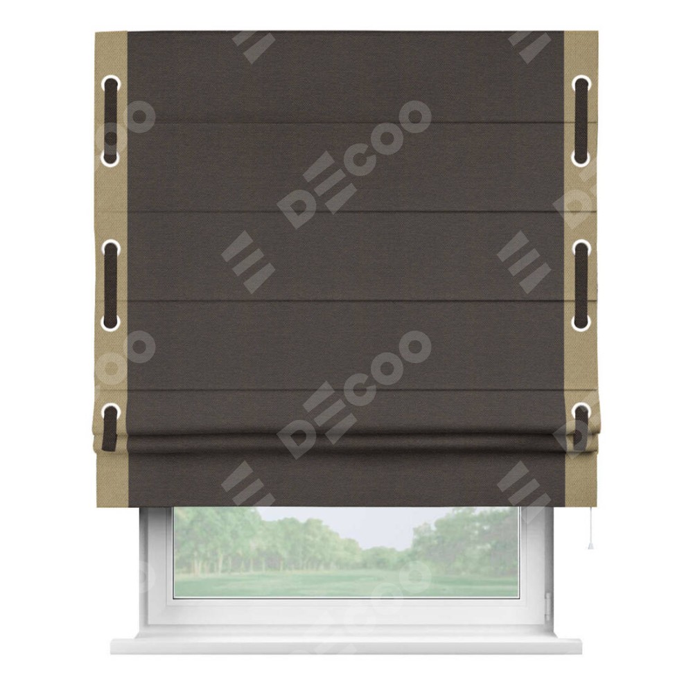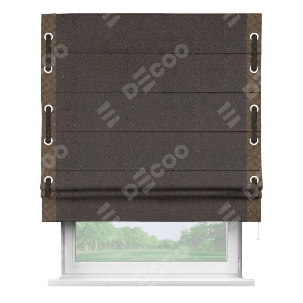 Римская штора «Кортин» с кантом Стрим Дуо (люверсы с пояском), для проема, ткань лён димаут, венге