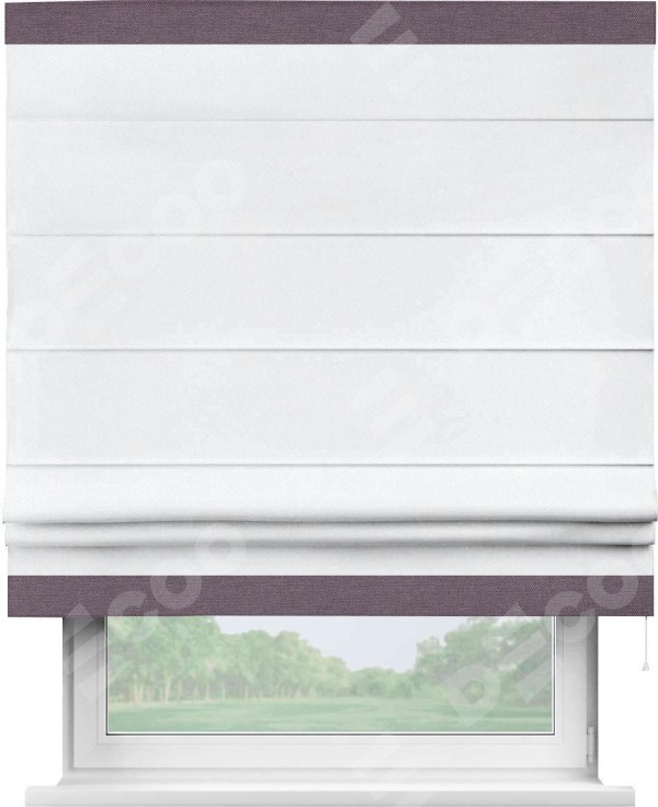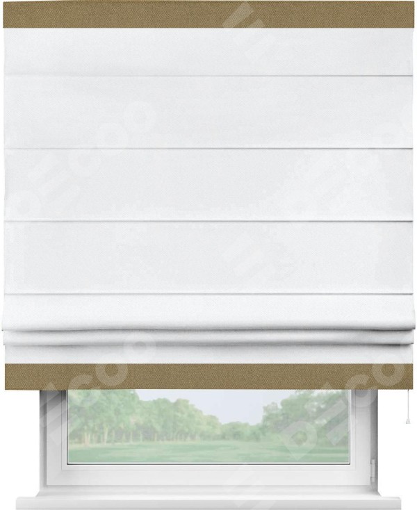 Римская штора «Кортин» для проема, лён димаут белый с кантом Горизонт
