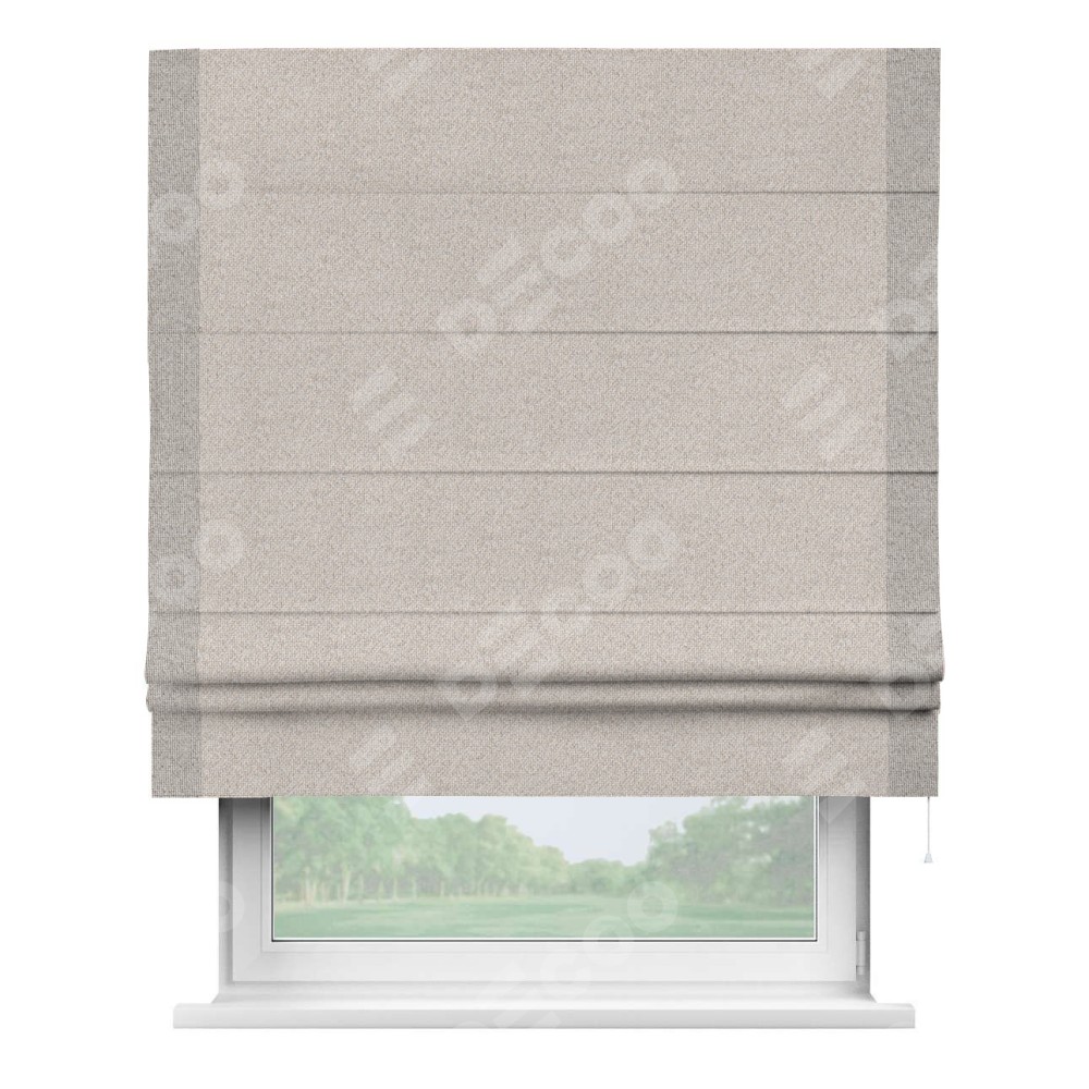 Римская штора «Кортин» для проема, лён димаут бежевый с кантом Стрим Дуо