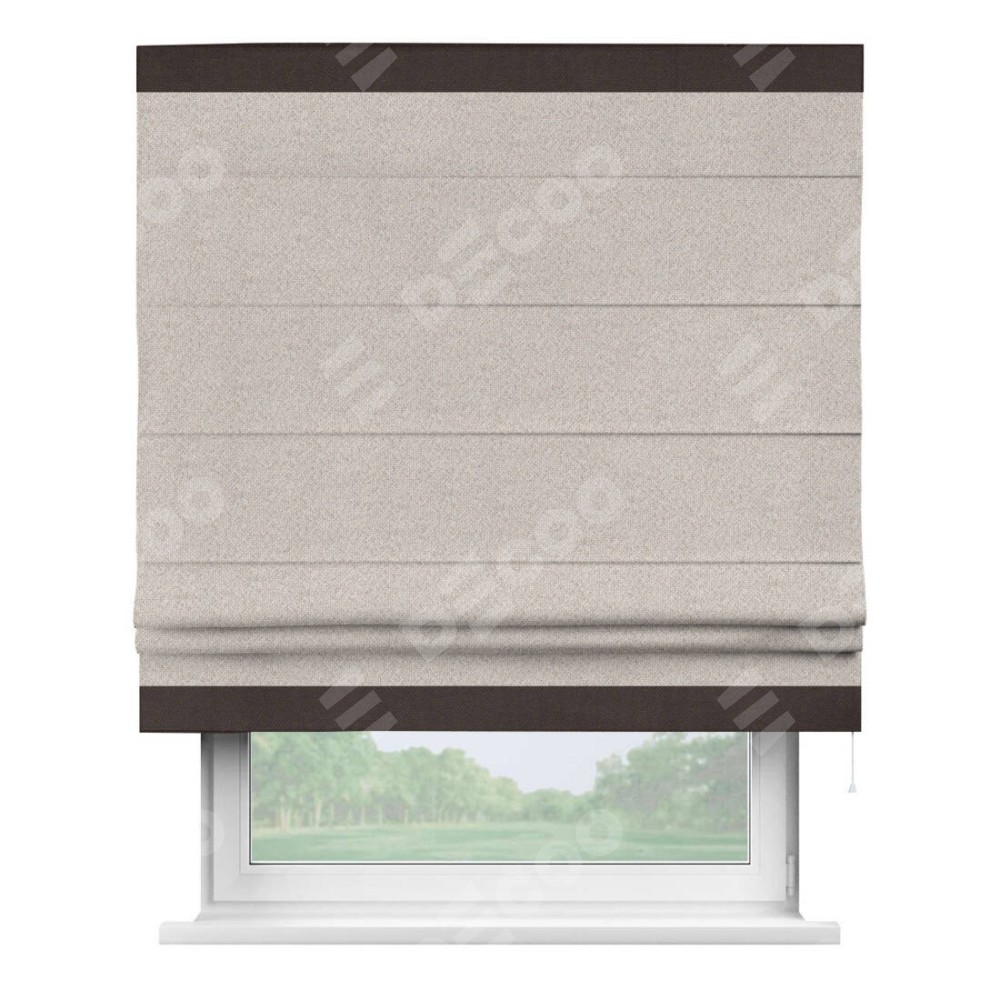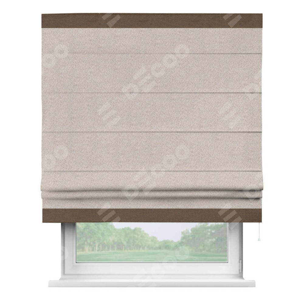 Римская штора «Кортин» для проема, лён димаут бежевый с кантом Горизонт