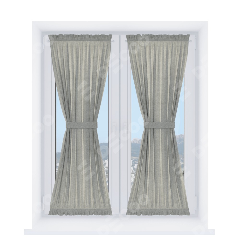 Штора «Песочные часы» производителя «Cortin», используется для створок окон и дверей, пошита из ткани лён кашемир серый, артикул ткани 17208.