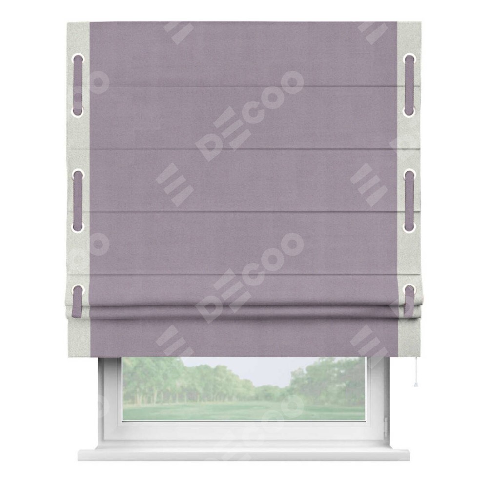 Римская штора «Кортин» для проёма, блэкаут однотонный лиловый с кантом Стрим Дуо (люверсы с пояском)