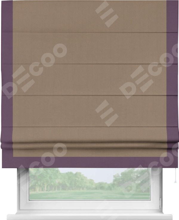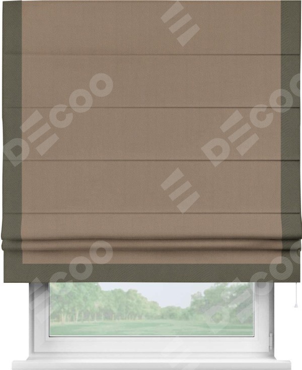 Римская штора «Cortin» для проёма, ткань блэкаут однотонный кофейно-бежевый с кантом Виктория