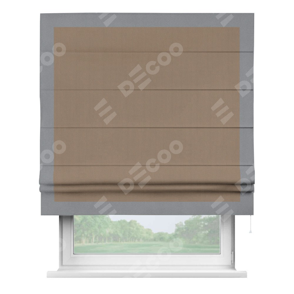 Римская штора «Cortin» для проёма, ткань блэкаут однотонный кофейно-бежевый с кантом Чесс