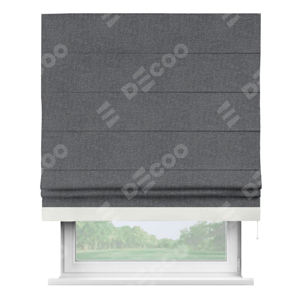 Римская штора «Кортин» для проёма, лён димаут графит с кантом Джестер