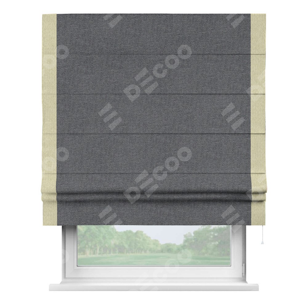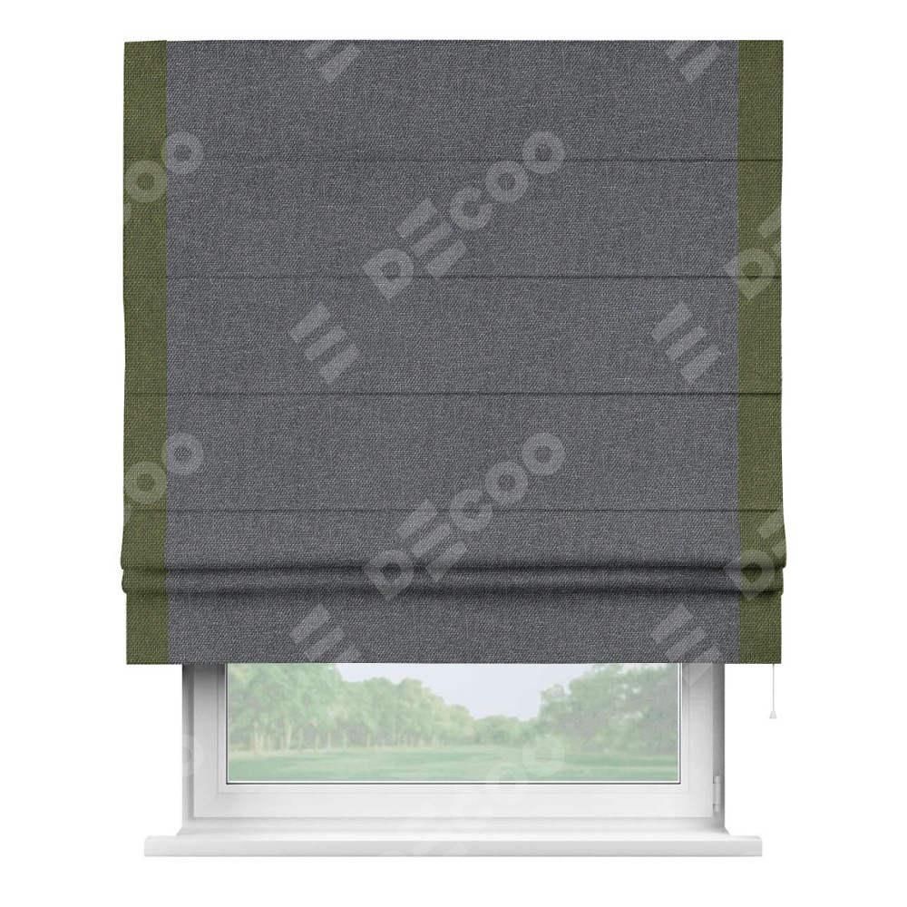 Римская штора «Кортин» для проёма, лён димаут графит с кантом Стрим Дуо