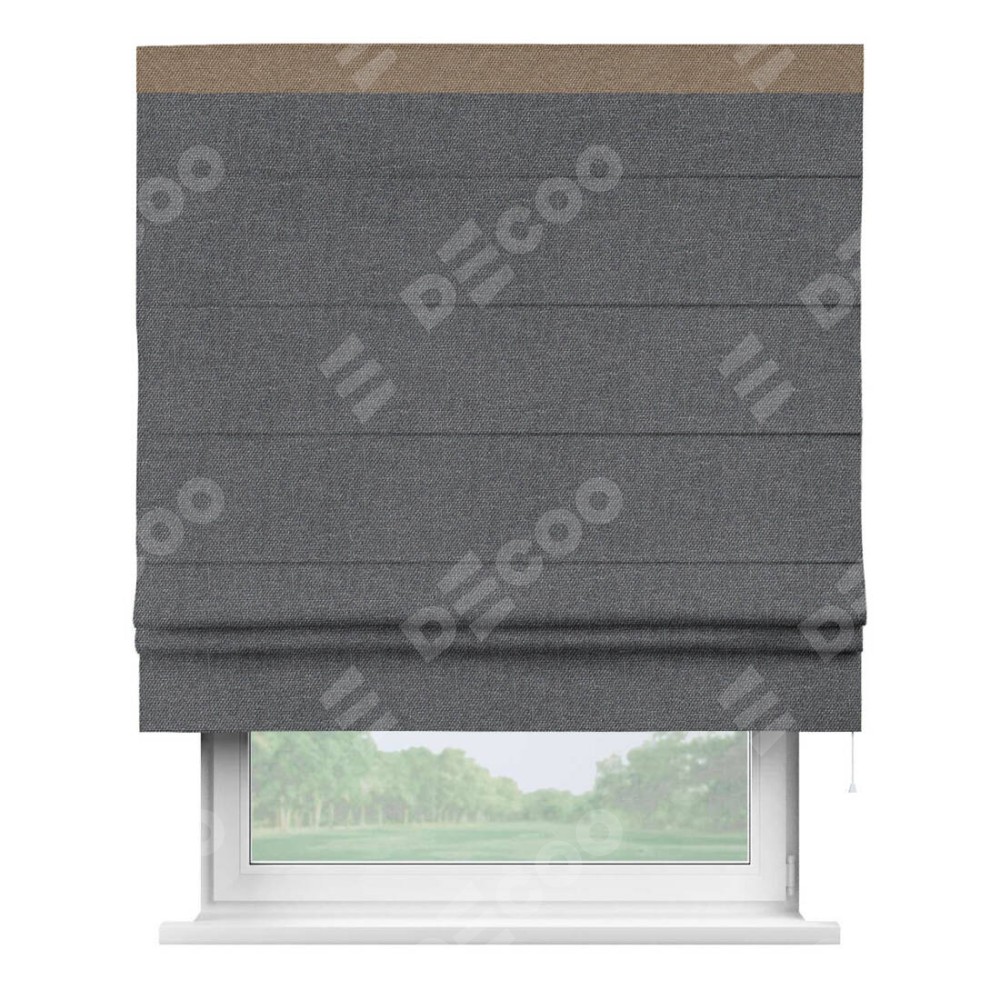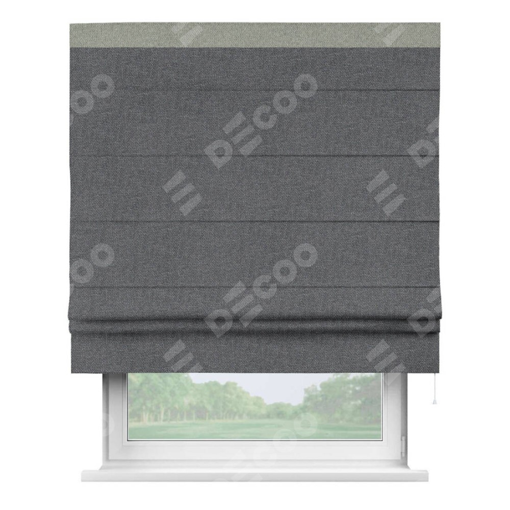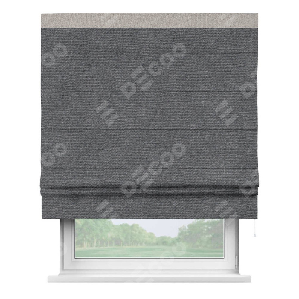 Римская штора «Кортин» для проёма, лён димаут графит с кантом Кинг