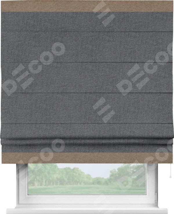 Римская штора «Кортин» для проёма, лён димаут графит с кантом Горизонт