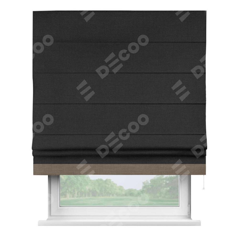 Римская штора «Кортин» для проёма, лён чёрный, с кантом Джестер