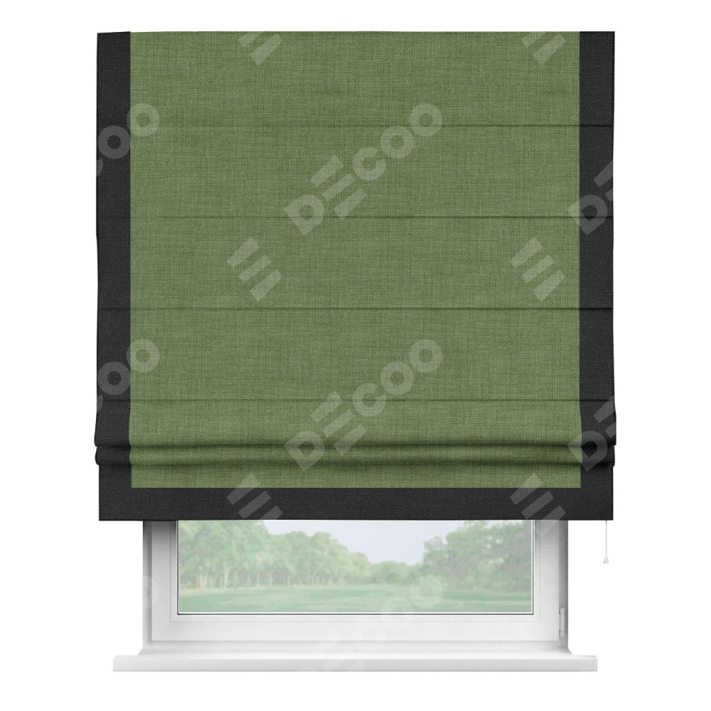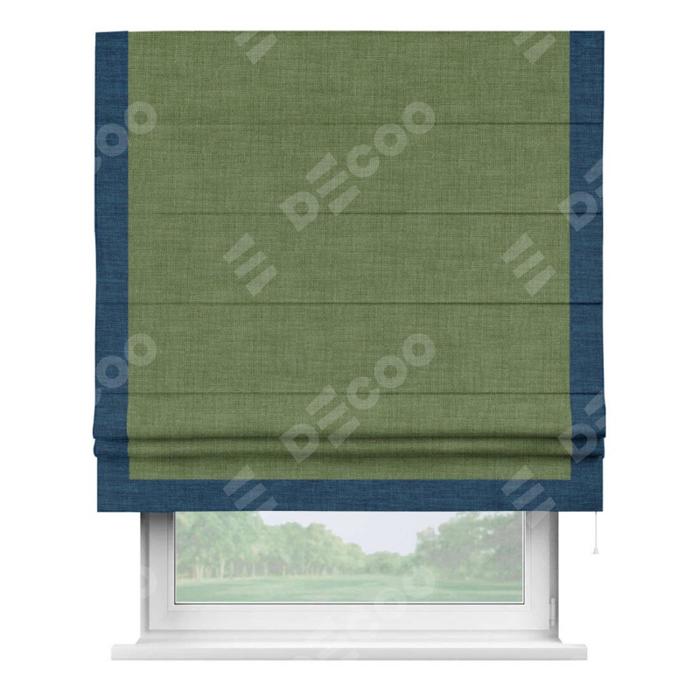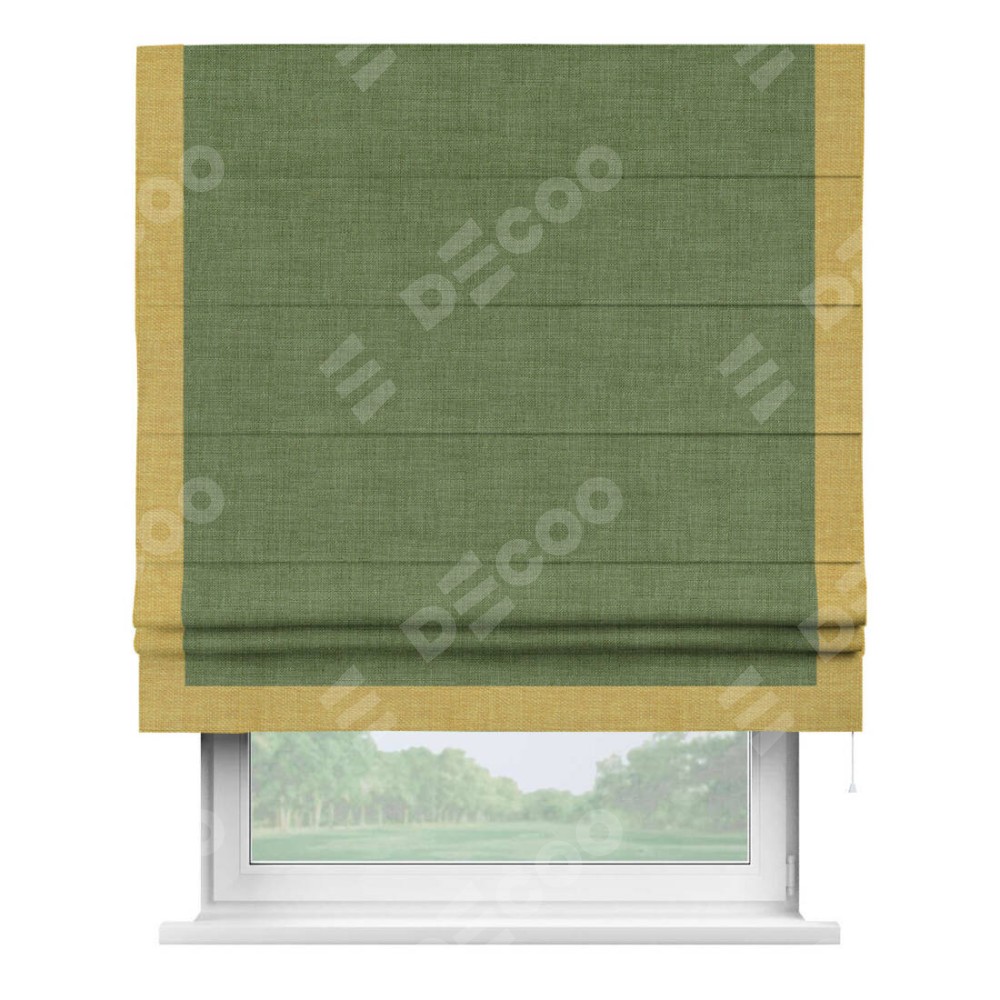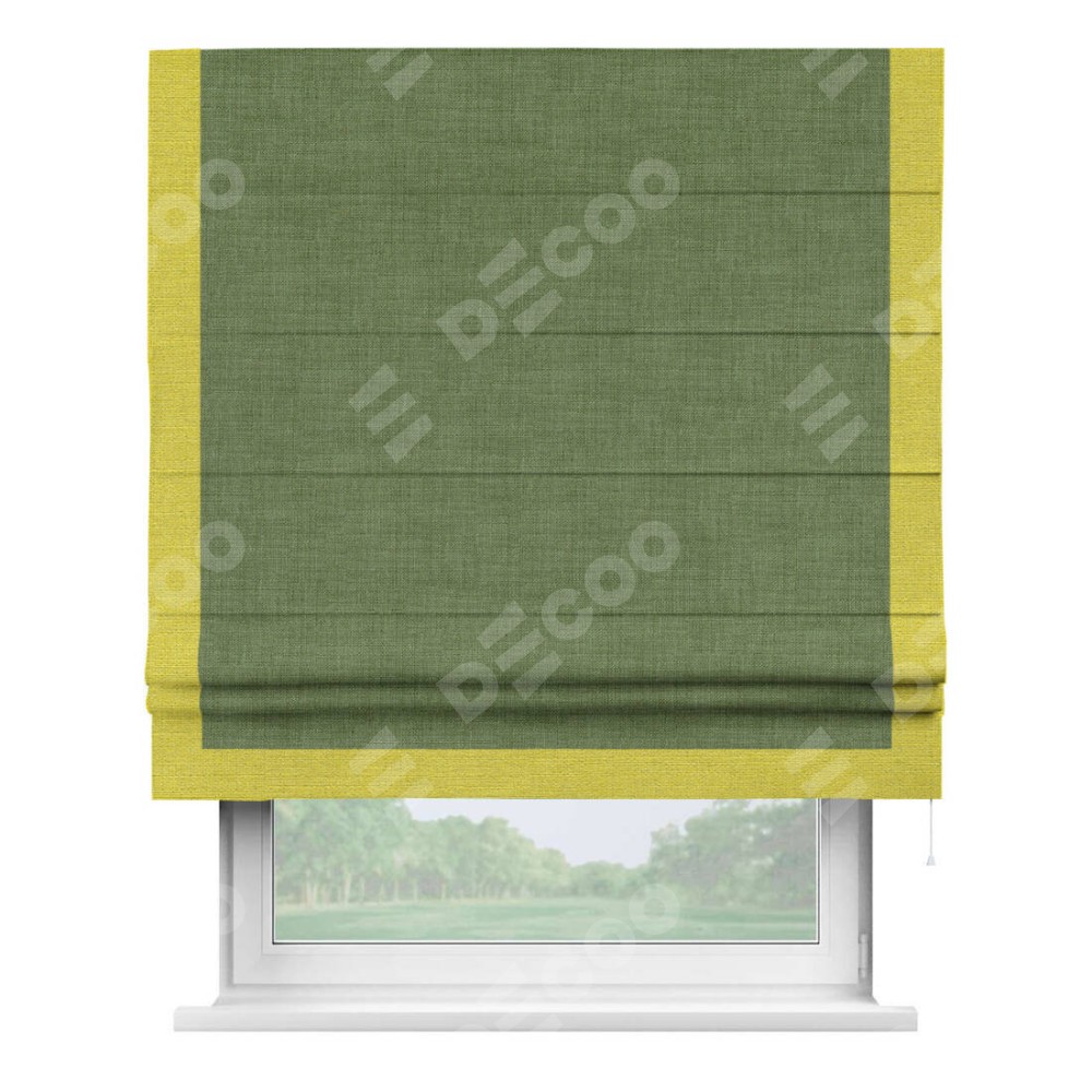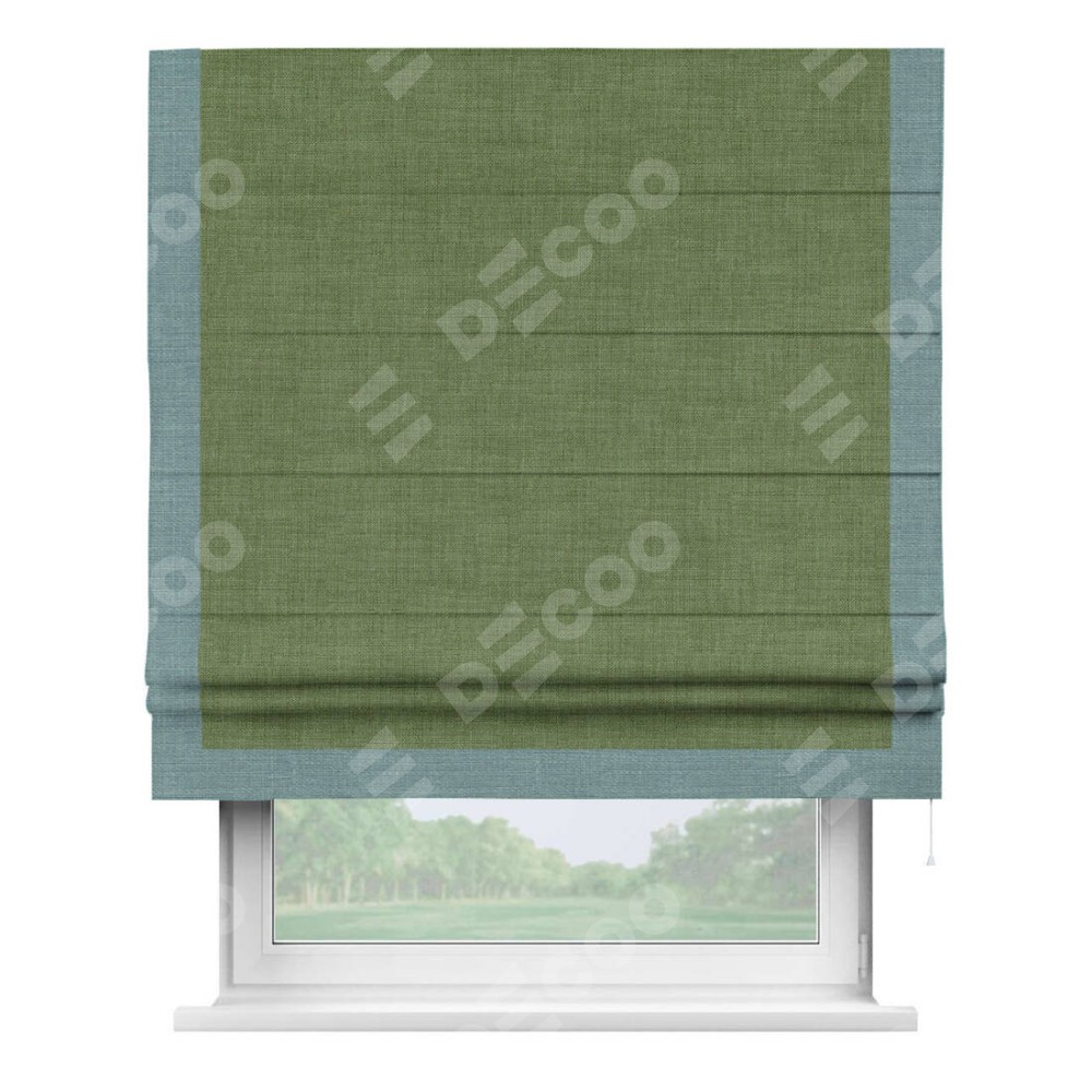 Римская штора «Кортин» для проёма, лён зелёный, с кантом Виктория
