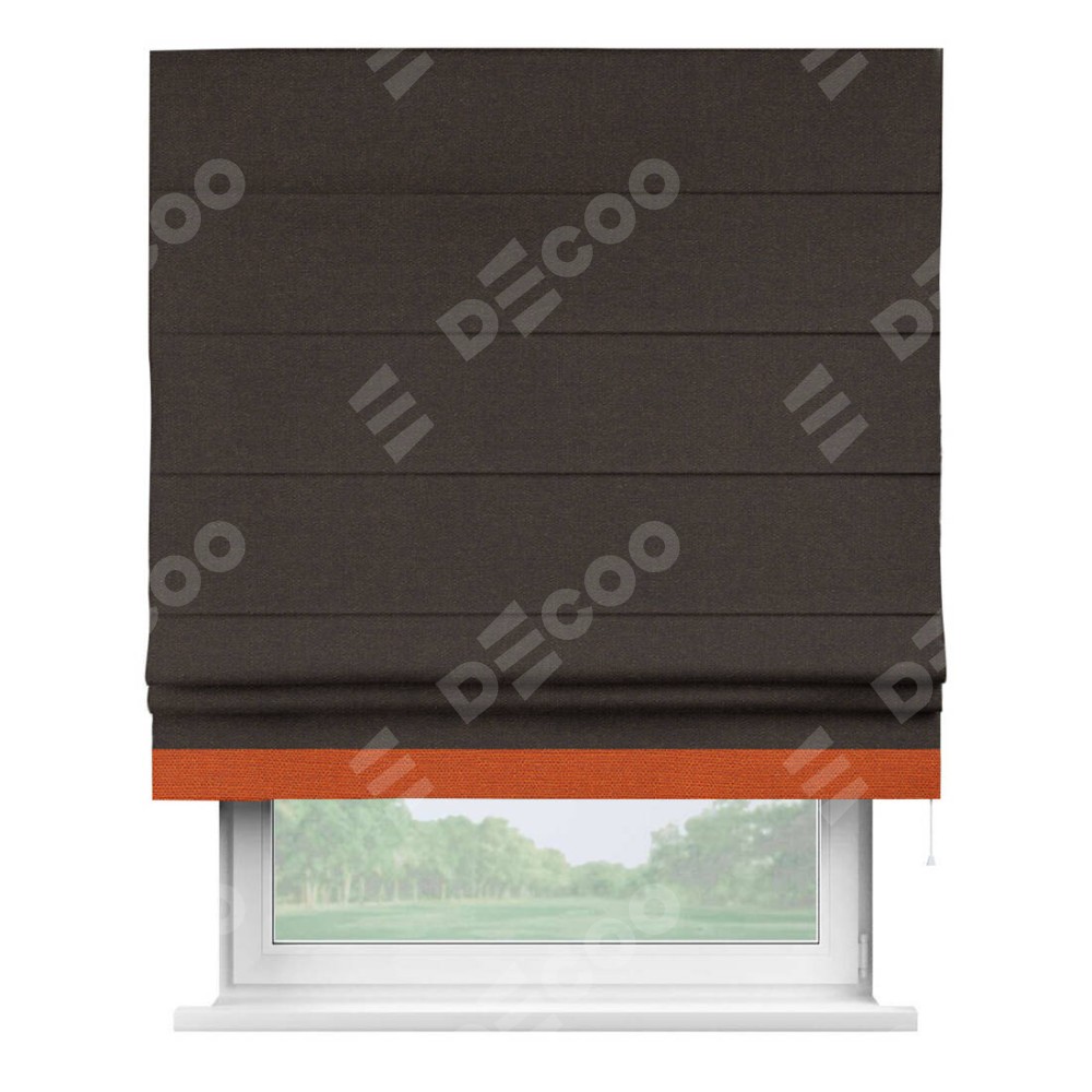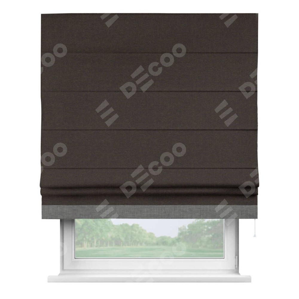 Римская штора «Кортин» для проёма, лён тёмно-коричневый, с кантом Джестер