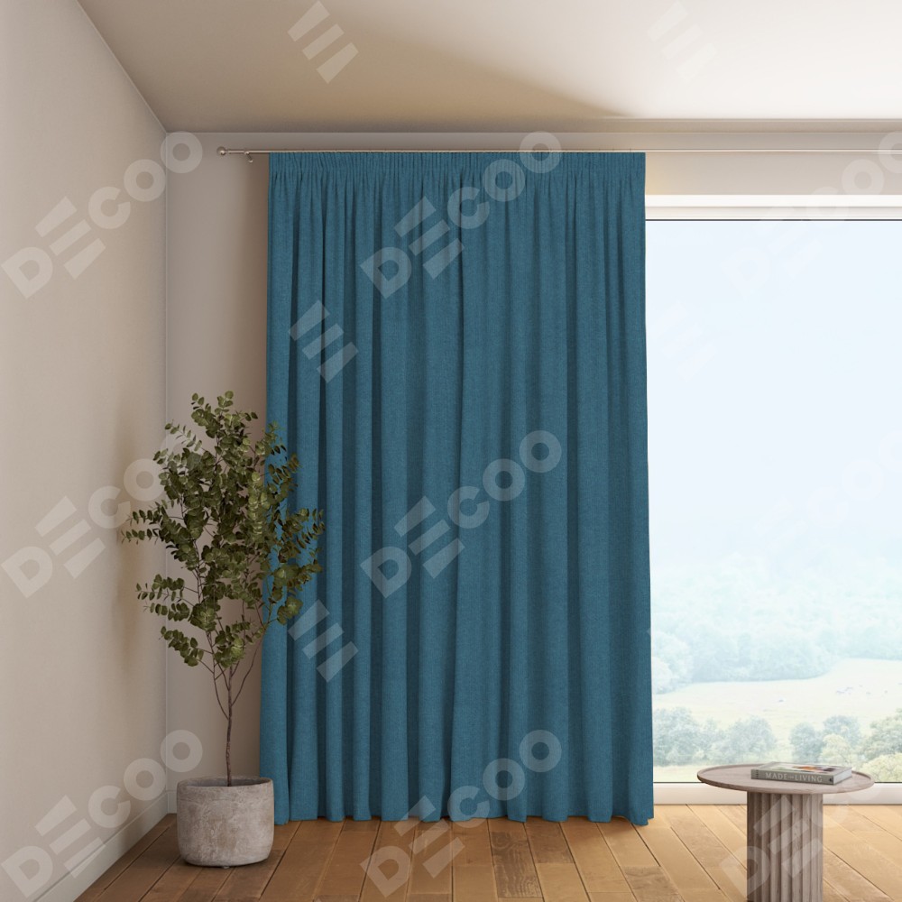 Комплект готовых штор «Cortin» лён блэкаут синий на тесьме «Карандаш»