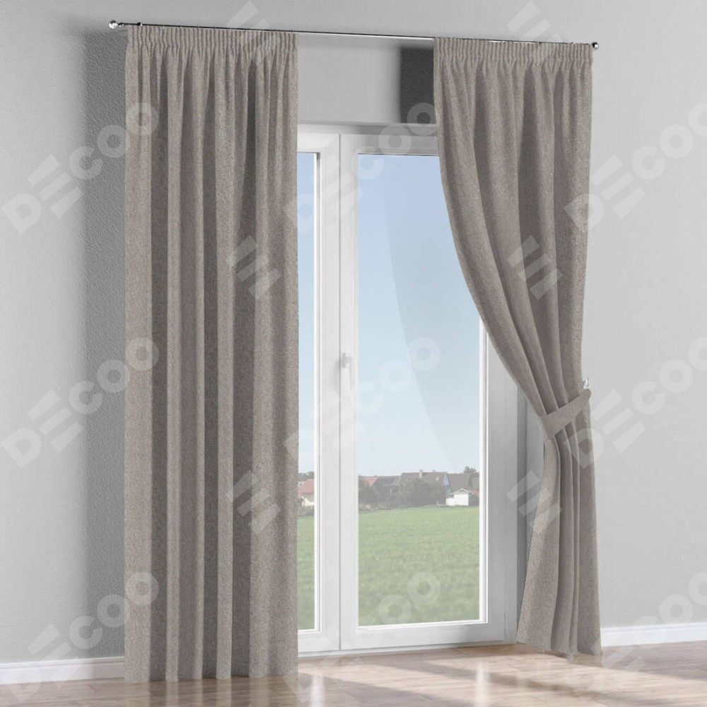 Комплект готовых штор «Cortin» лён блэкаут серо-бежевый на тесьме «Карандаш»