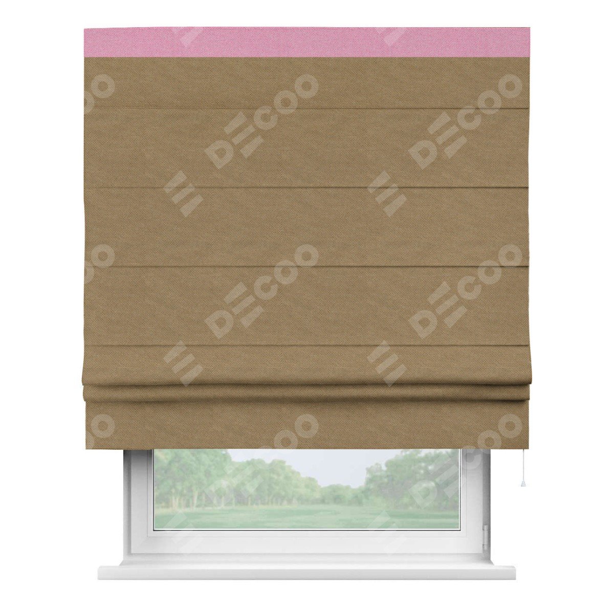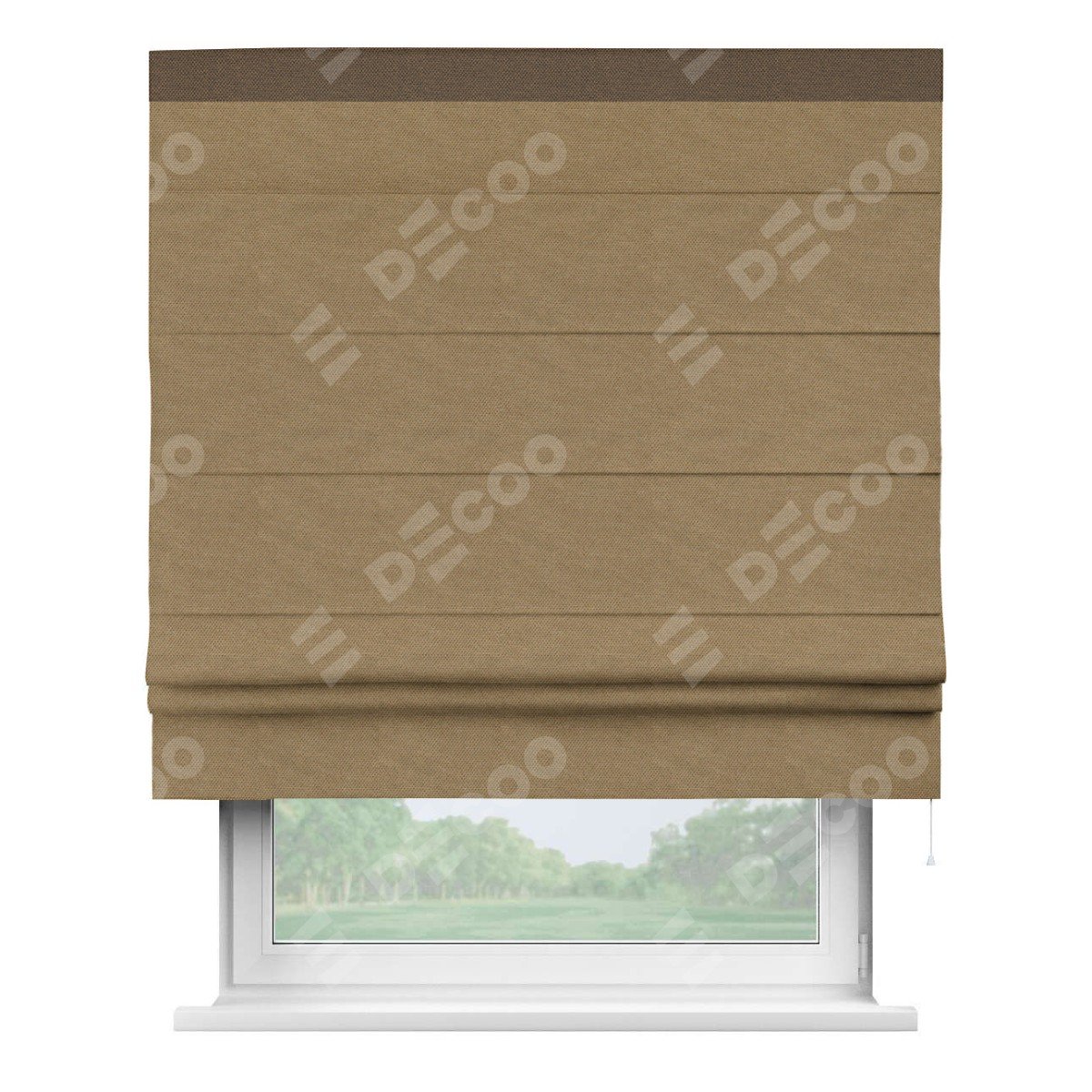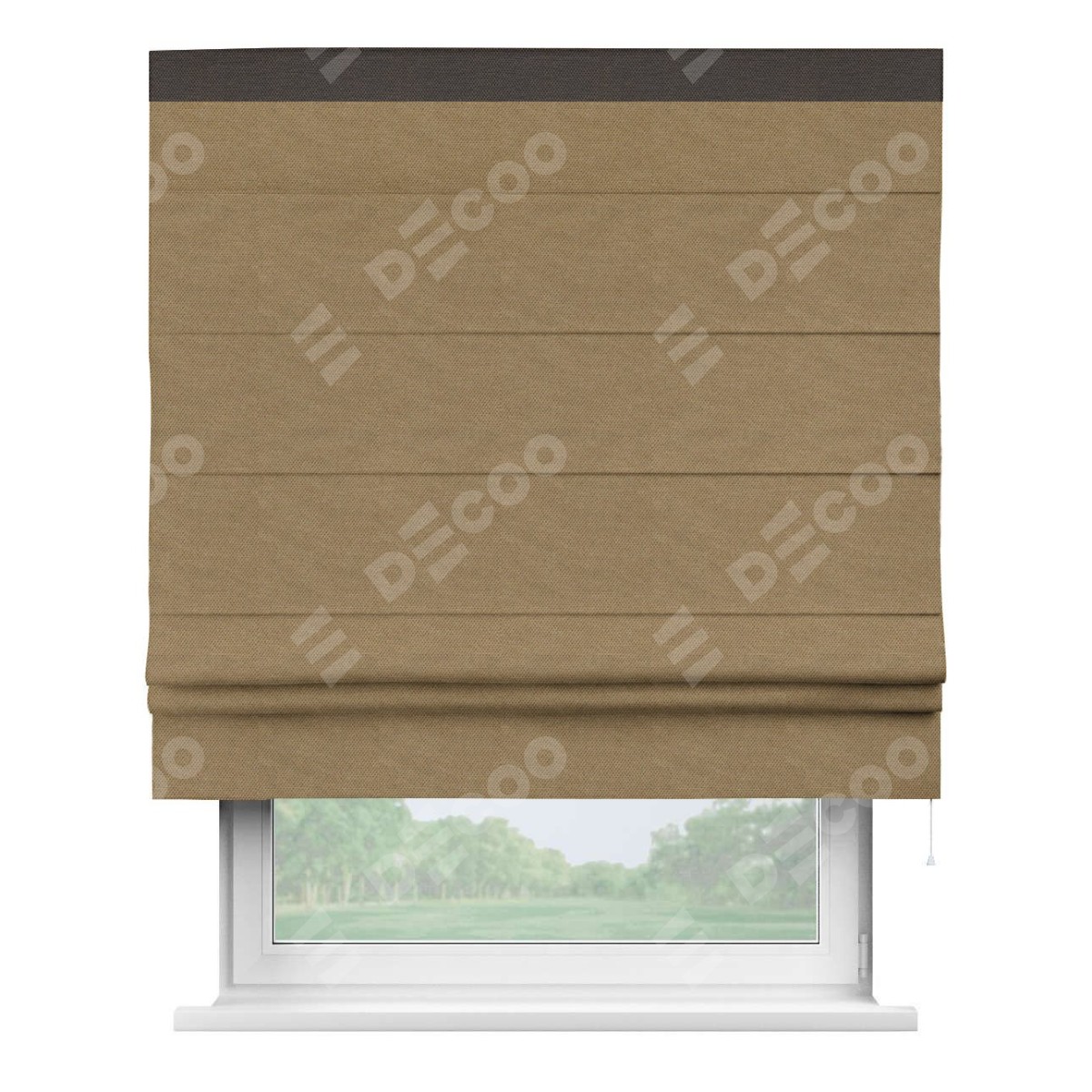 Римская штора производителя «Cortin», используется для проёма, пошита из ткани лён димаут Коричневый, артикул 83026. Отделка шторы кантом «Кинг», ткань для канта используется из льна димаут разной расцветки на выбор. Имеет универсальный механизм и подходит для монтажа: на потолок, на стену и в нишу.