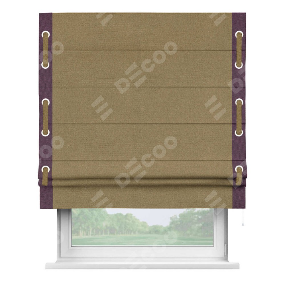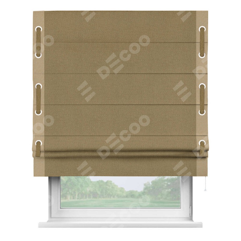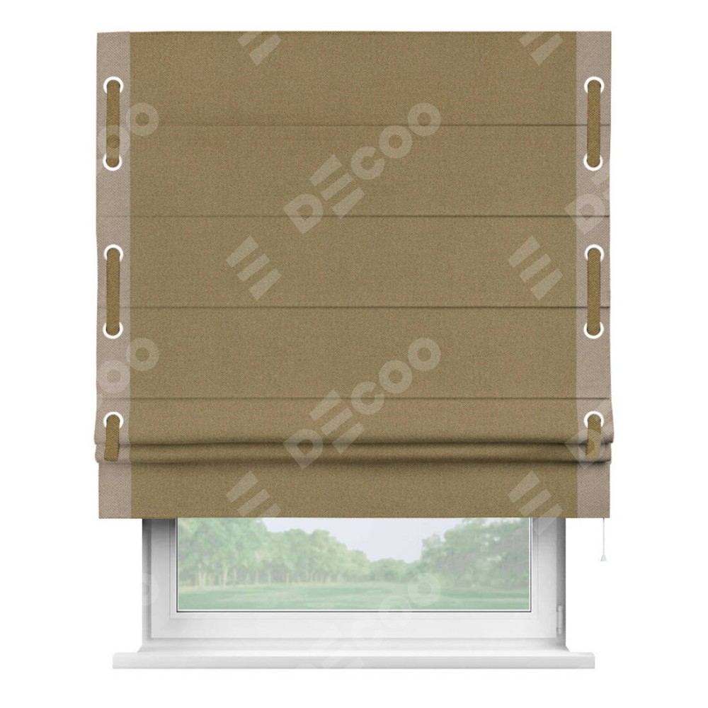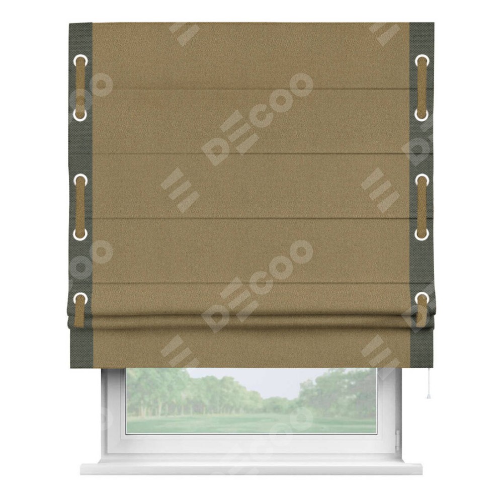 Римская штора «Кортин» с кантом Стрим Дуо (люверсы с пояском), для проема, ткань лён димаут, оливковый