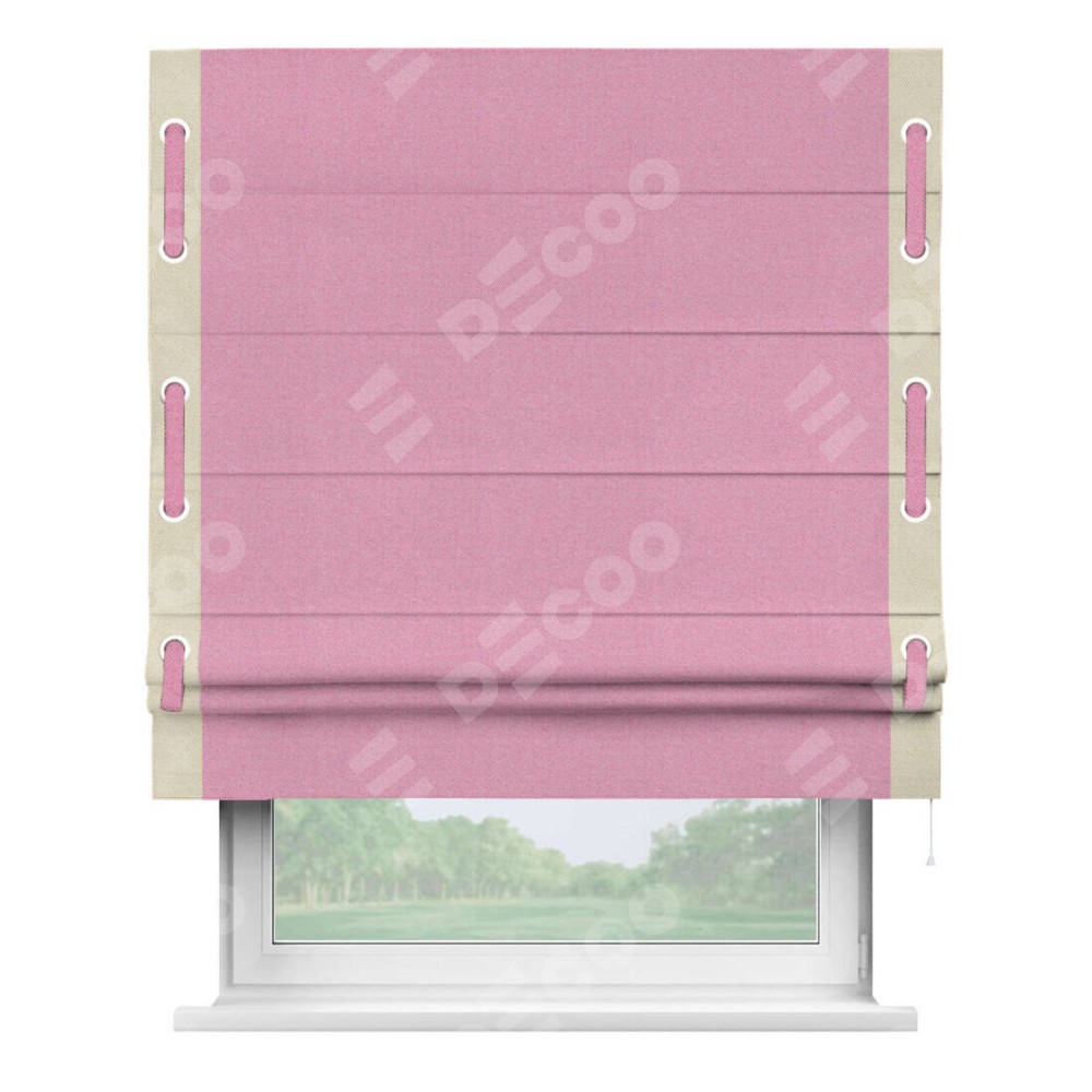 Римская штора «Кортин» с кантом Стрим Дуо (люверсы с пояском), для проема, ткань лён димаут, розовый