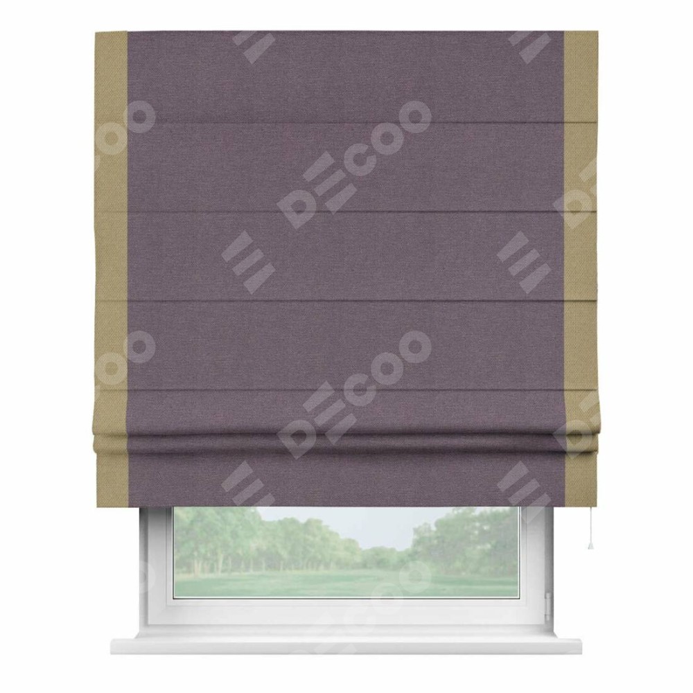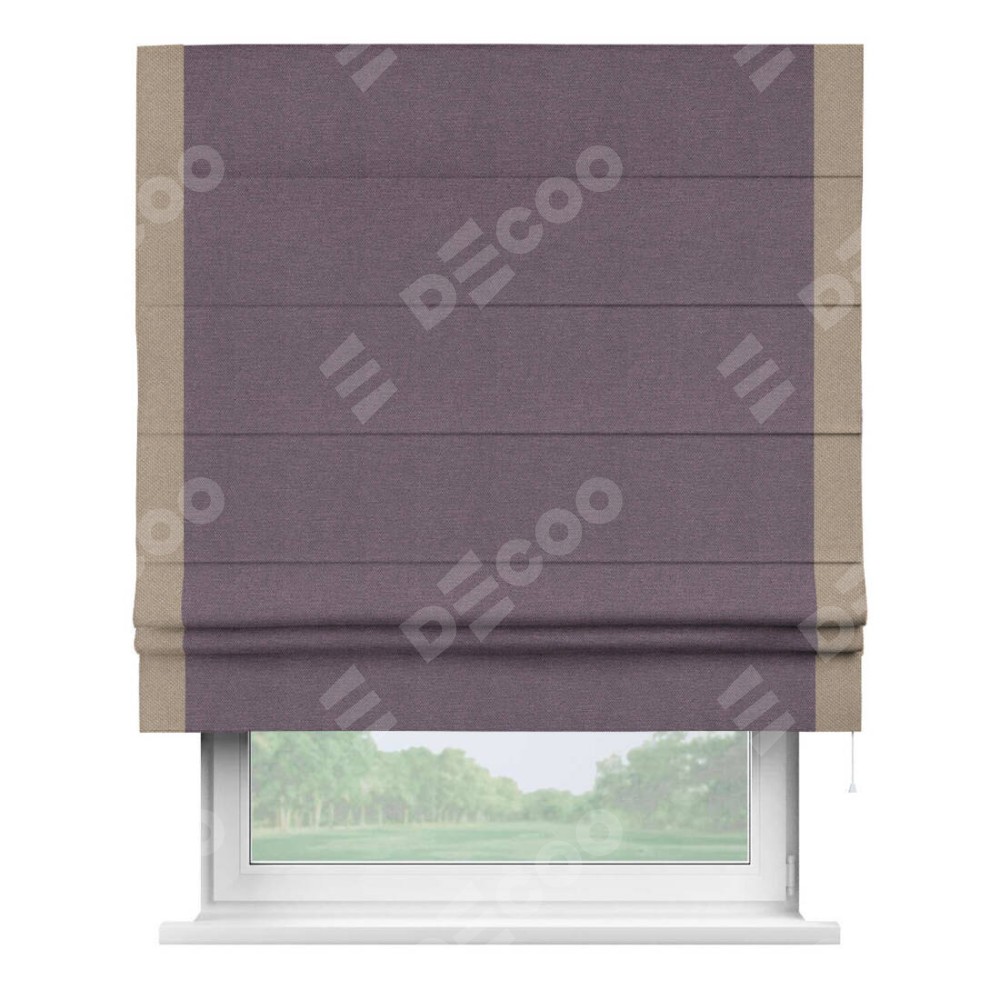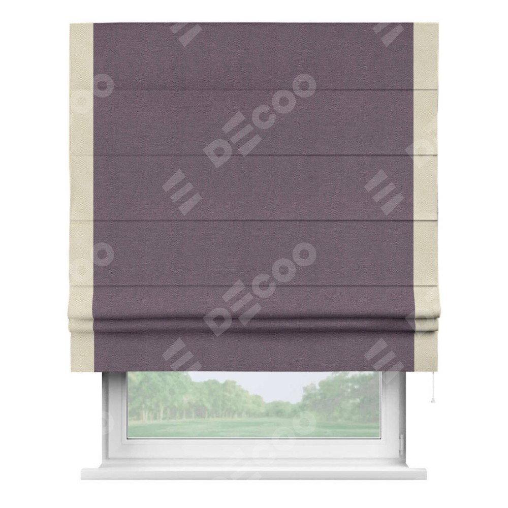 Римская штора «Кортин» с кантом Стрим Дуо, для проема, ткань лён димаут, светло-фиолетовый