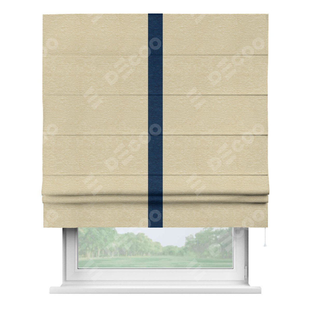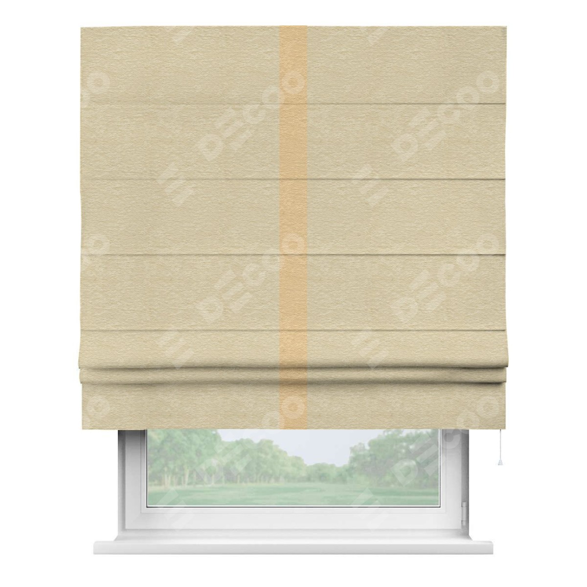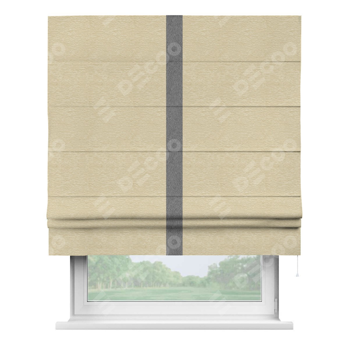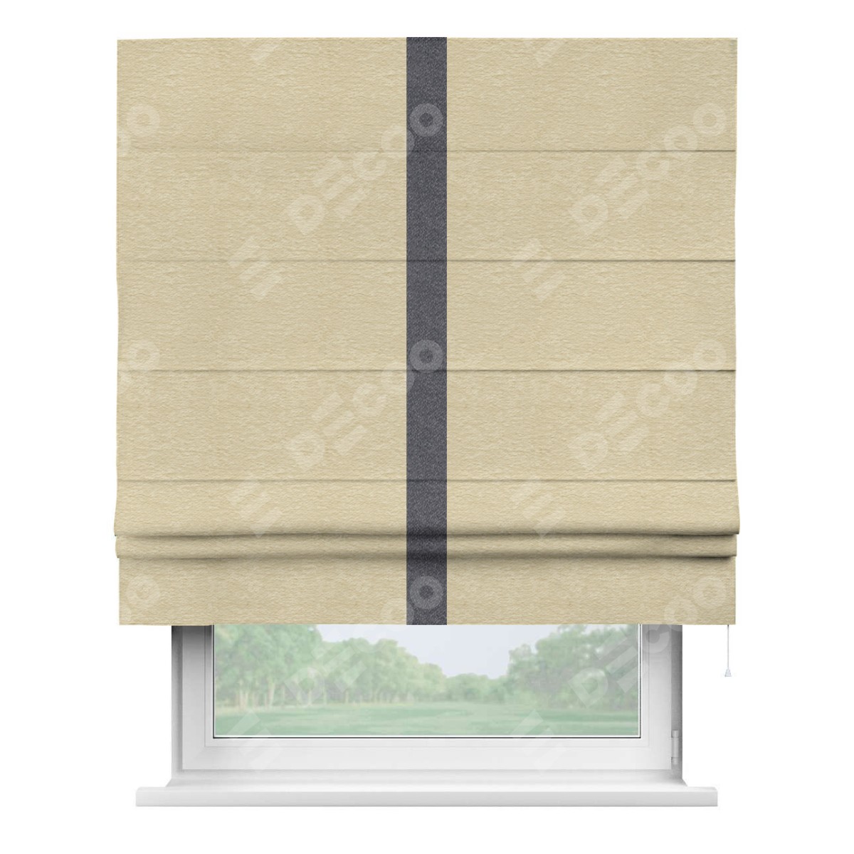 Римская штора производителя «Cortin», используется для проёма, пошита из ткани софт однотонный светло-бежевый, артикул 54426. Отделка шторы кантом «Хайвэй», ткань для канта используется из софта разной расцветки на выбор. Имеет универсальный механизм и подходит для монтажа: на потолок, на стену и в нишу.