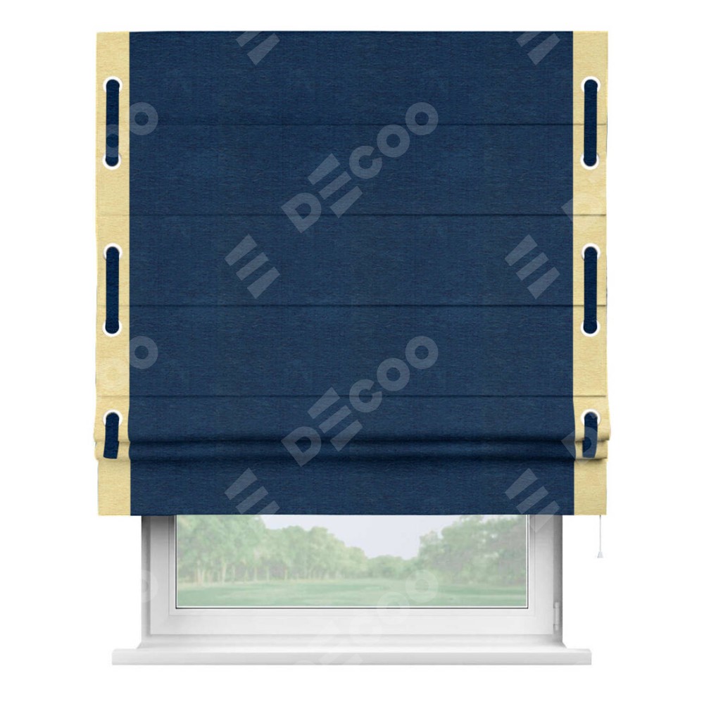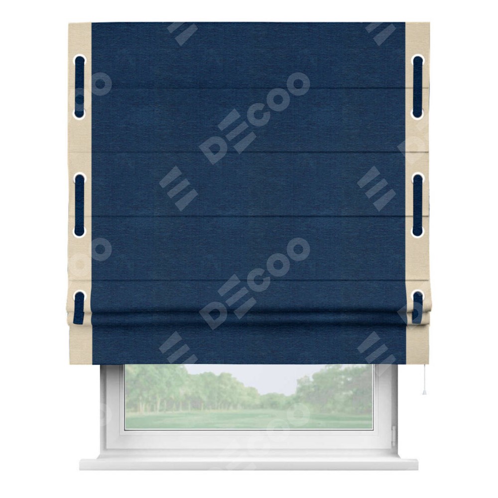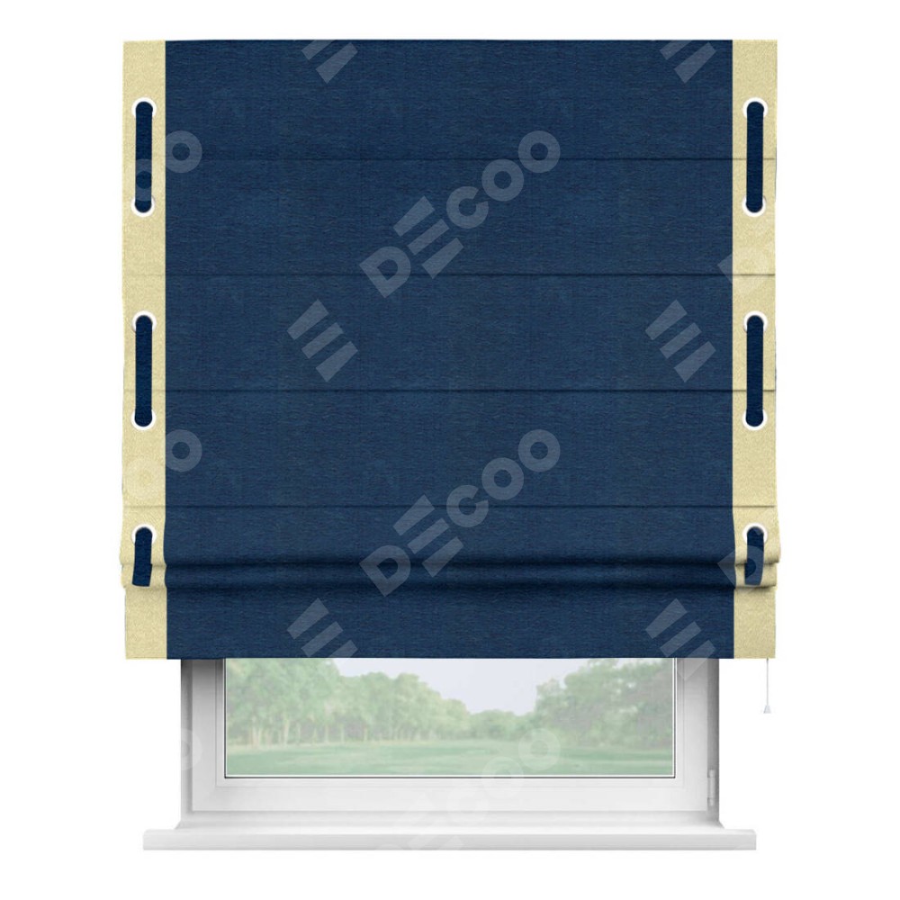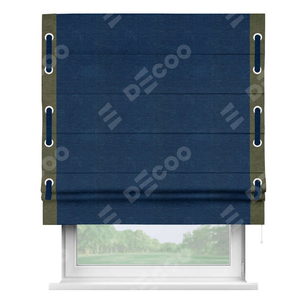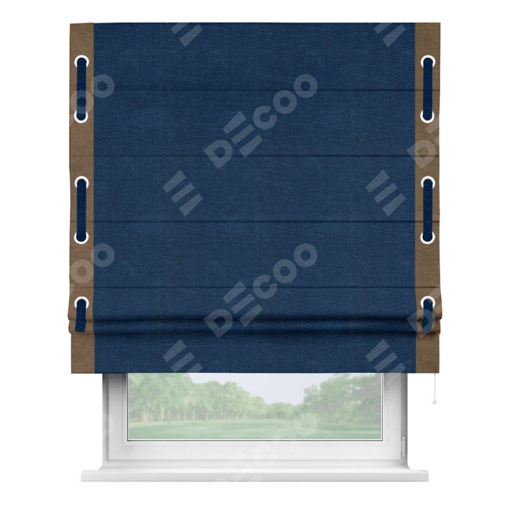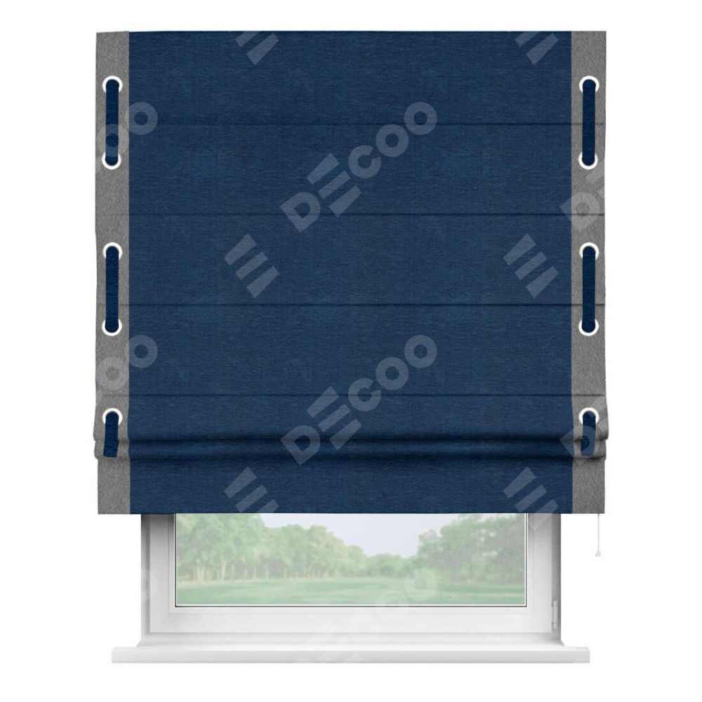 Римская штора «Кортин» с кантом Стрим Дуо (люверсы с пояском), для проема, ткань софт однотонный синий