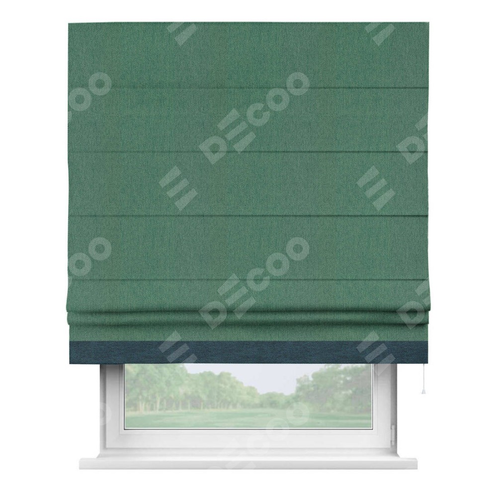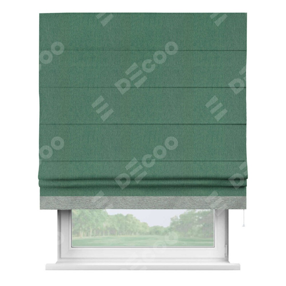 Римская штора «Кортин» с кантом Джестер, для проема, ткань твид блэкаут, зелёный