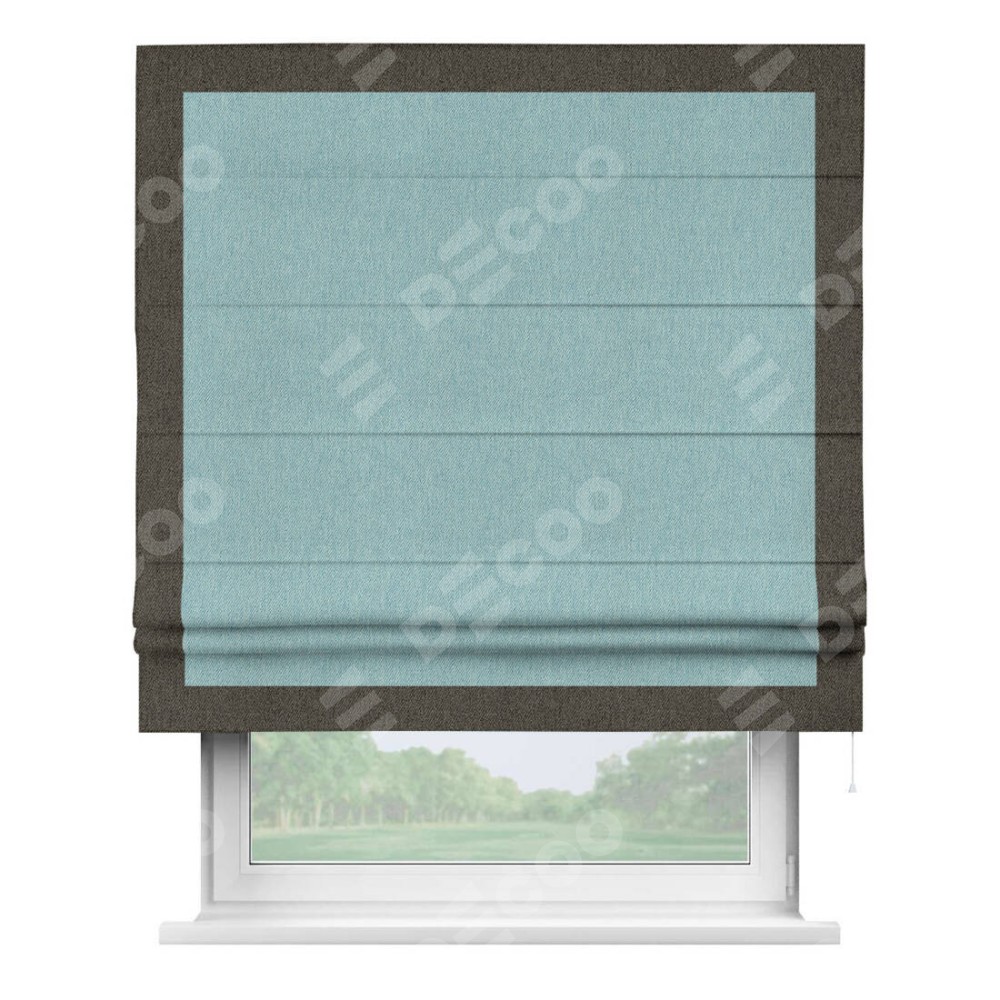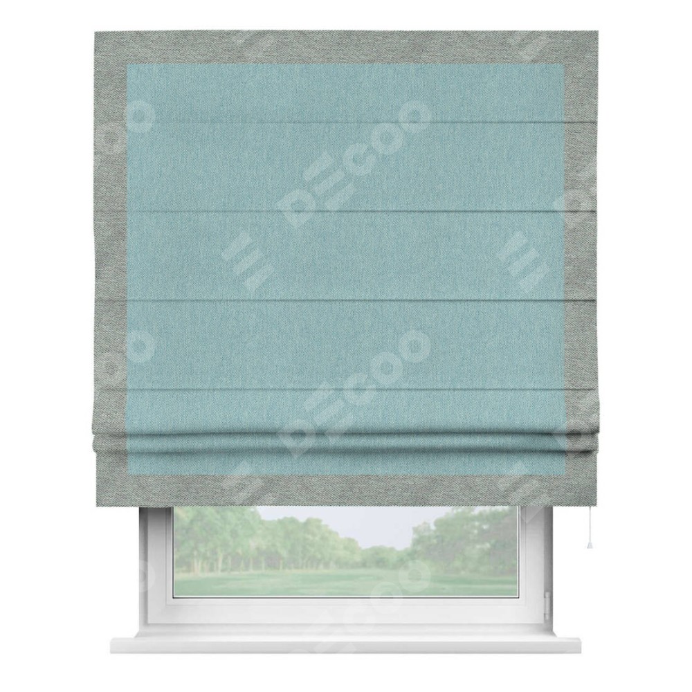 Римская штора «Кортин» с кантом Чесс, для проема, ткань твид блэкаут, небесно-голубой