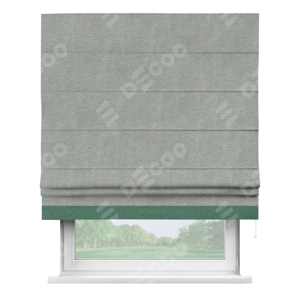 Римская штора производителя «Cortin», используется для проёма, пошита из ткани твид блэкаут светло-серый, артикул 21576. Отделка шторы кантом «Джестер», ткань для канта используется из твида разной расцветки на выбор. Имеет универсальный механизм и подходит для монтажа: на потолок, на стену и в нишу.