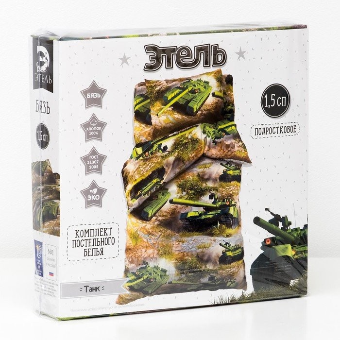 Постельное бельё «Этель» 1.5 сп Танки 143*215 см, 150*214 см, 50*70 см, бязь 125 г/м2