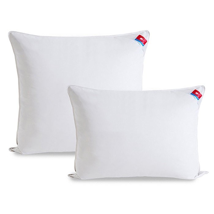 Натуральный гусиный пух и перо первой категории, чехол их прочного пуходержащего твила с белоснежным шёлковым кантом по краям — это всё Подушка «Искушение» 50×70 см, 75−80% гусиный пух, 20−25% гусиное перо, твил 100% хлопок.