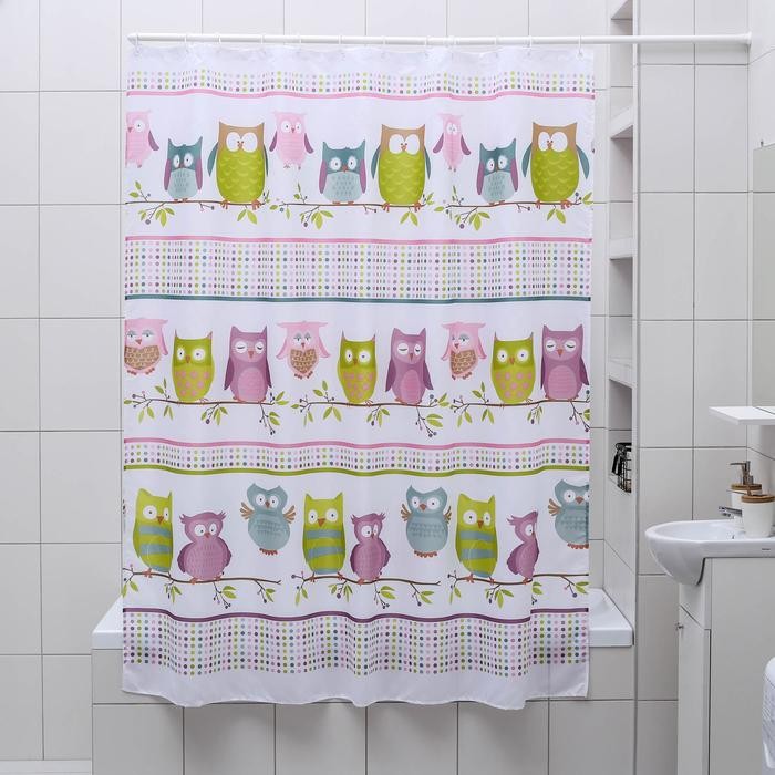 Штора для ванной комнаты Доляна «Совушки», 180×180 см, полиэстер