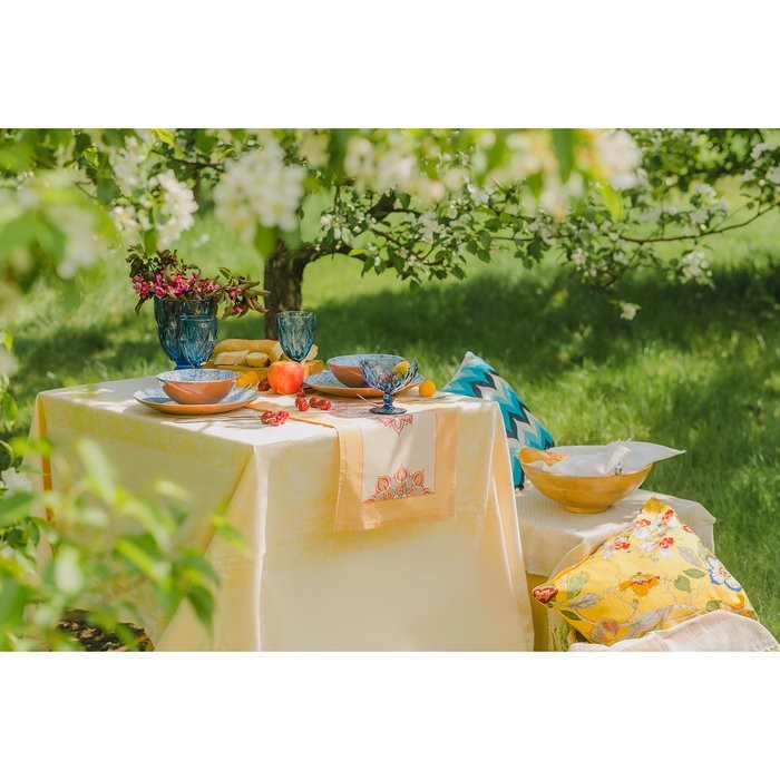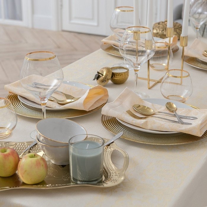 Столовый набор «Этель» (скатерть 150×300 см, салфетки 45×45 см — 12 шт.) цвет шампань, хл. с ВМГО