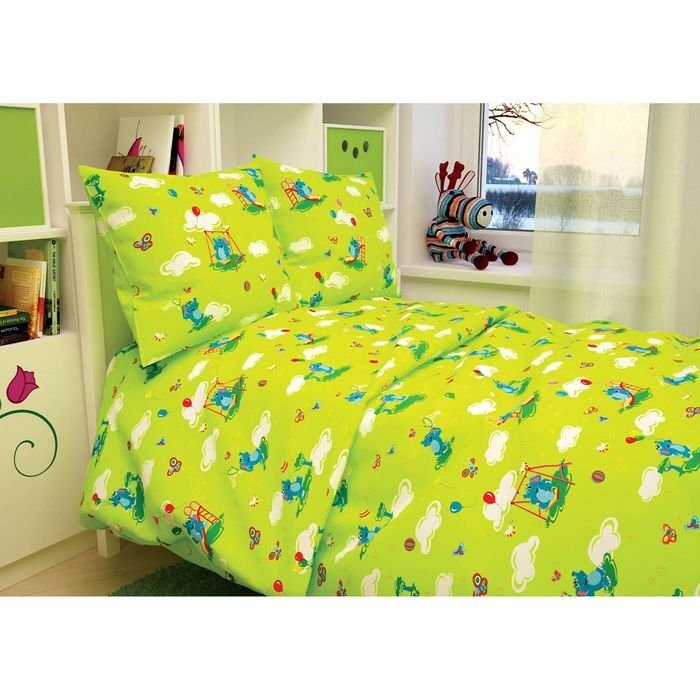 Детское постельное бельё BABY «Слоники», цвет зеленый 112×147 см, 110×150 см, 60×60 см, бязь 142 гр/м