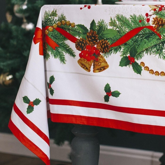 Столовый набор украсит праздничный интерьер. Изделия с эксклюзивным принтом сшиты из хлопкового полотна. Этот материал имеет плотную и упругую структуру, обладает высокой прочностью и на ура справляется с первостепенными задачами: