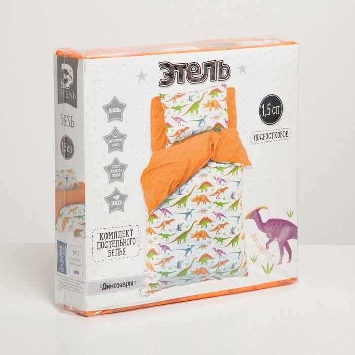 Постельное бельё Этель 1,5 сп «Динозавры» 143×215 см, 150×214 см, 50×70 см-1 шт, 100% хлопок, бязь