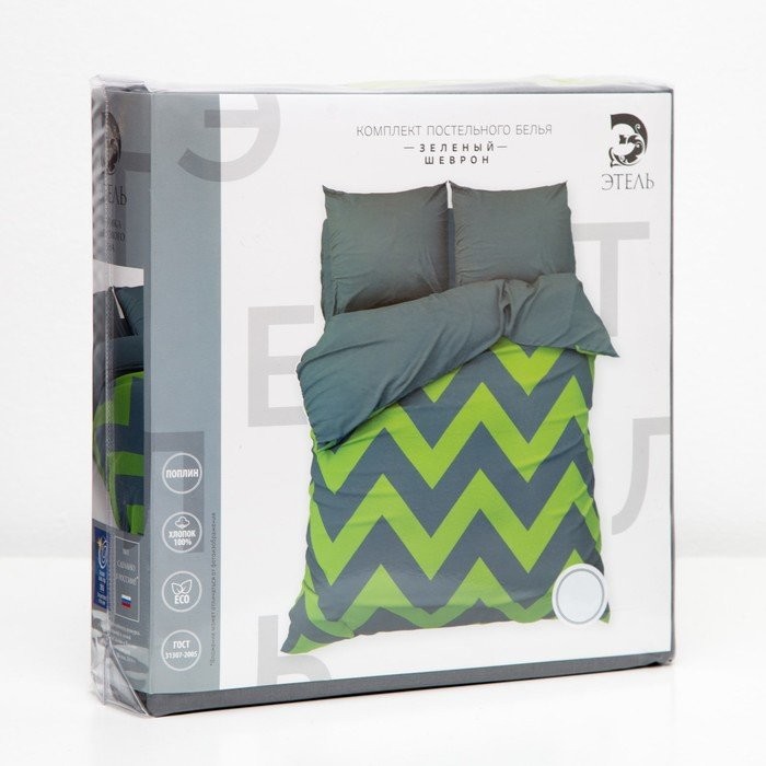 Постельное бельё Этель евро «Зелёный шеврон» 200×217, 240*220, 70×70−2 шт