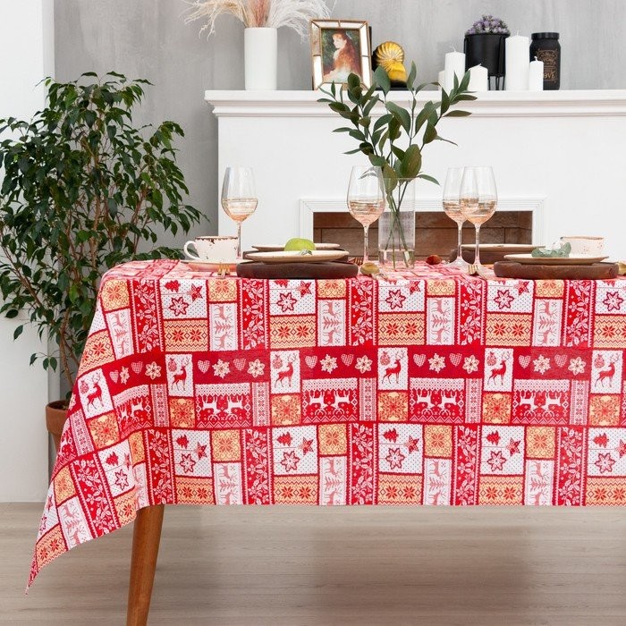 Скатерть «Доляна» Скандинавский рисунок 220*144 см, 100% хлопок, рогожка, 164 г/м2