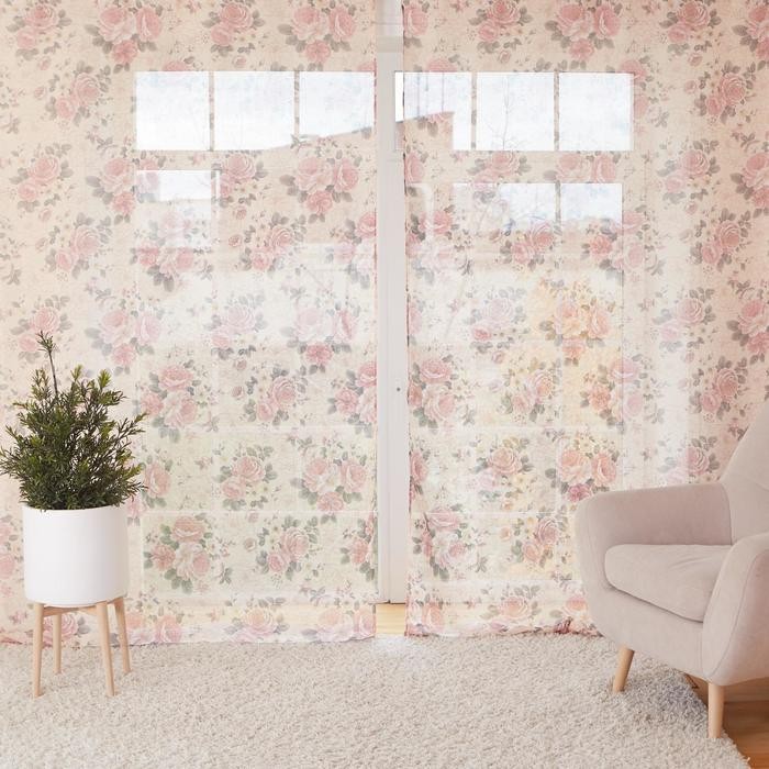 Штора тюлевая «Этель» 250×270 см Цветочная композиция без утяжелителя, 100% п/э