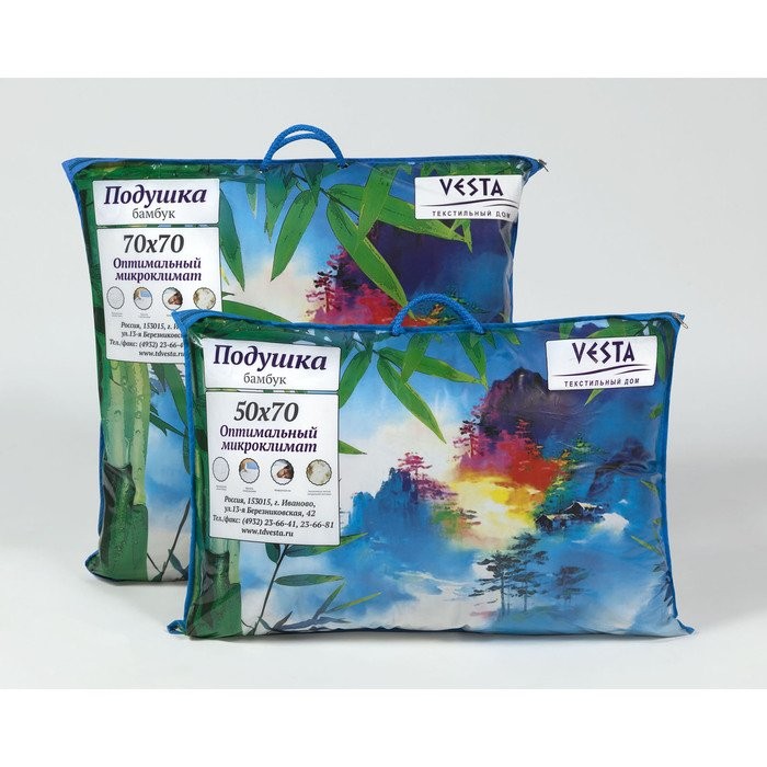 Подушка стёганная 70×70 см, бамбуковое волокно, ткань тик, п/э 100%