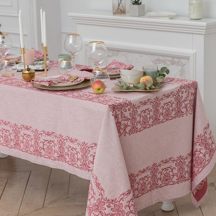 Столовый набор «Этель» (скатерть 150×250 см, салфетки 45×45 см — 8 шт.) цвет бордо, хл. с ВМГО
