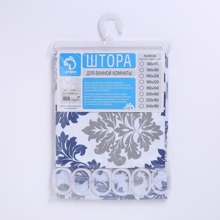 Штора для ванной комнаты Доляна «Венеция», 180×180 см, полиэстер, цвет сине-серый