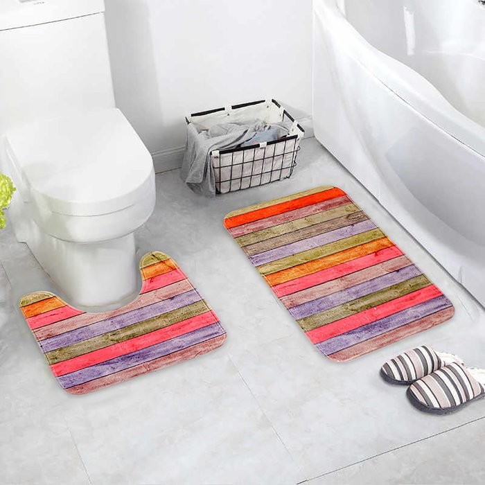 Набор ковриков для ванны и туалета Доляна «Цветные деревяшки», 2 шт: 40×45, 45×75 см